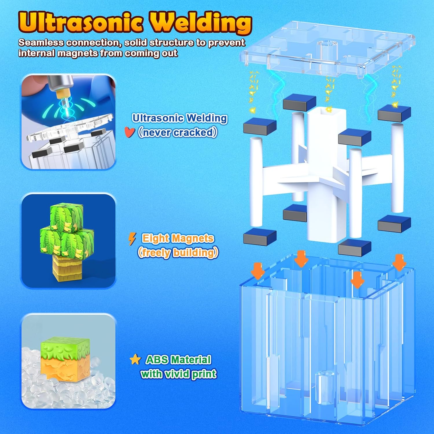 - 【Quantity You Can Trust】Gooidea magnetic building blocks are made from food-grade ABS and reinforced with ultrasonic welding to prevent cracking—no loose parts, no worries. Smooth, rounded edges protect little hands. Colorfast UV printing keeps patterns bright and makes blocks washable for long-lasting fun.