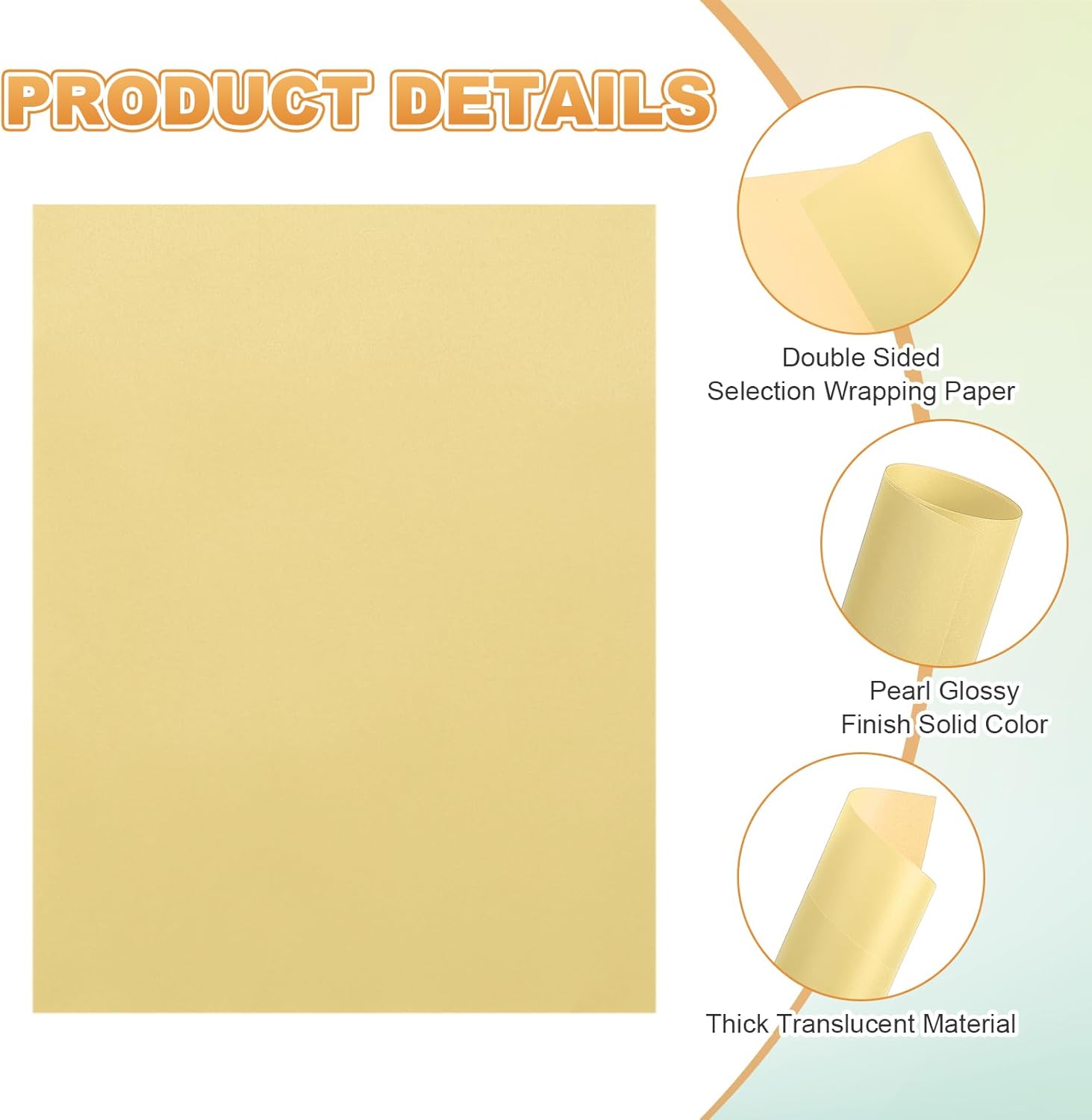 - Paper Gram Weight: 100gsm; Total Size: 8.5" x 10.98" / 21.6cm x 27.9cm (W*L) ;Material: Wood pulp; Color: Gold; In the package : 60 Sheets x Colored Vellum Paper