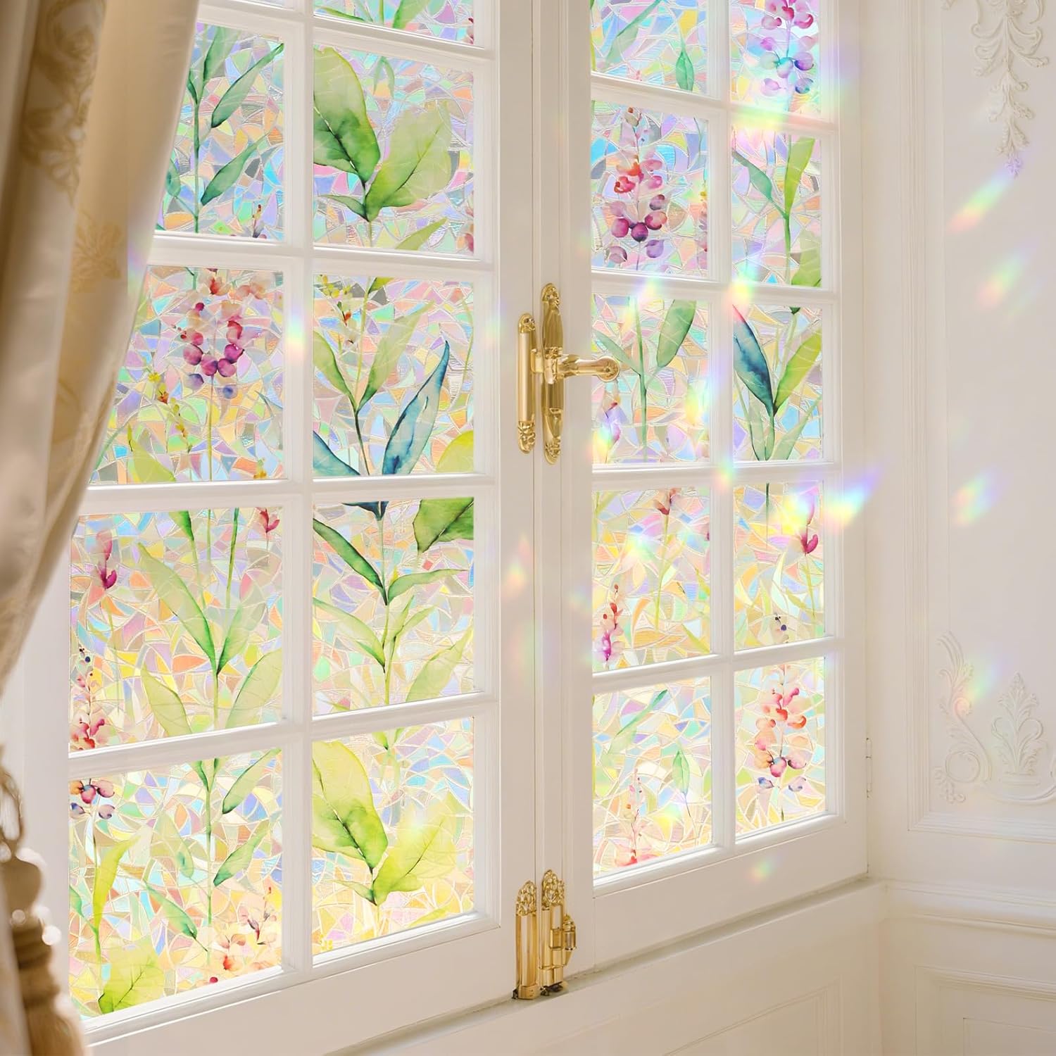 - 【Elegant 3D Design With Rainbow Light】Features a textured gladiolus floral pattern. this window privacy film creates rainbow visual effect when sunlight shines through and brings unique decoration on your windows