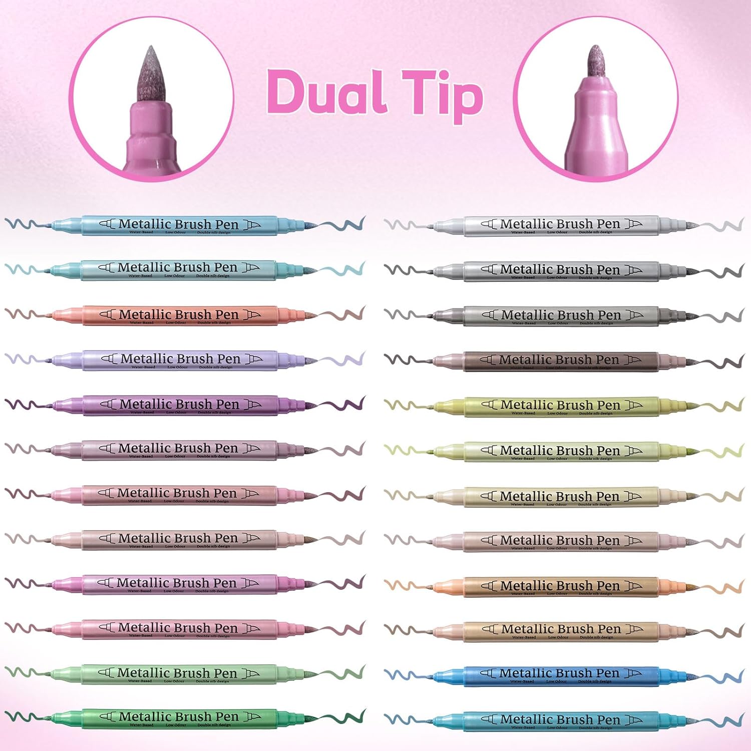 24 Pack Metallic Markers, Dual Tip Glitter Pens for Black Paper & Rock Painting Metallic Acrylic Paint Markers for DIY Crafts, Scrapbooking, Glass, Wood, Cards Alcohol Based Quick Dry Ink