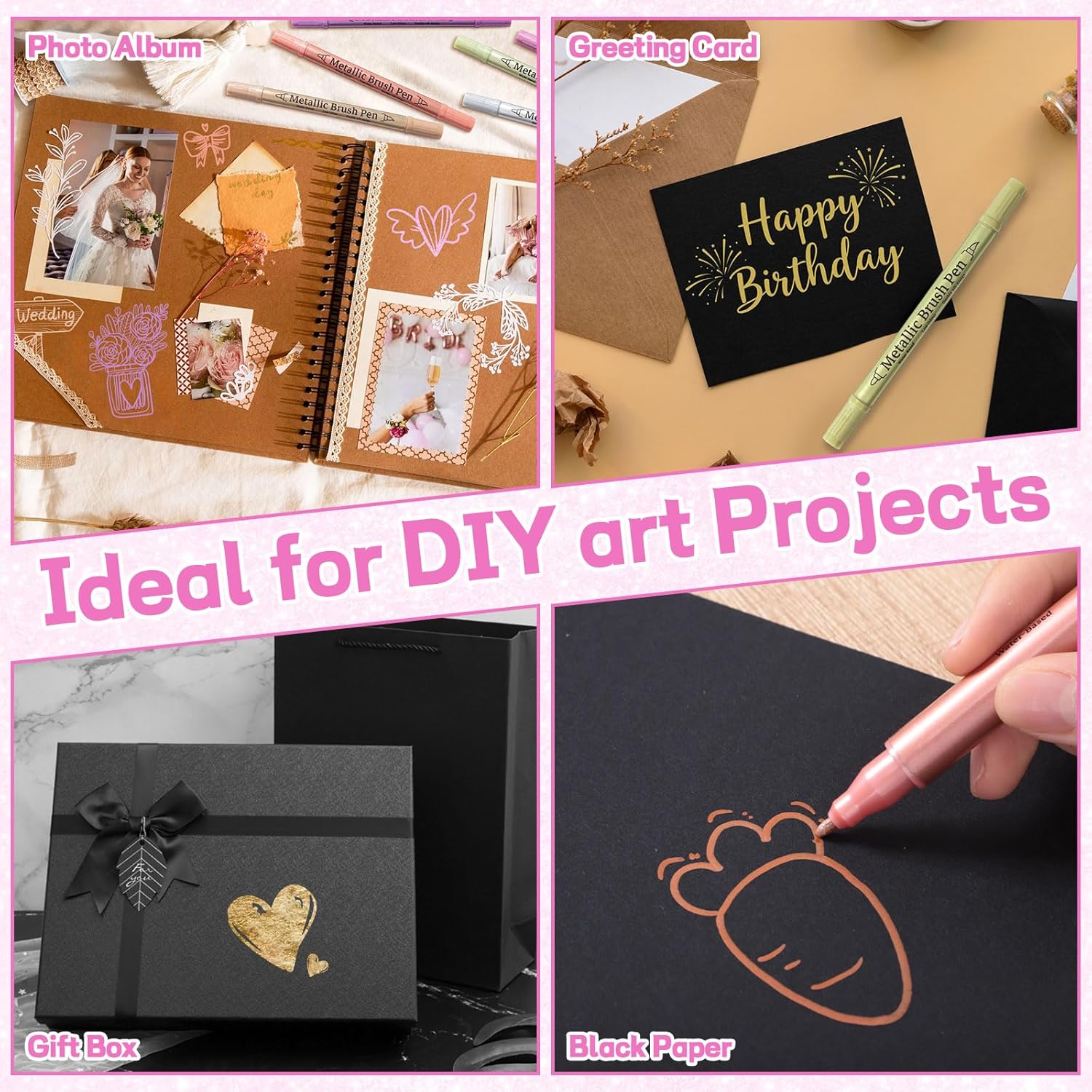 - 【Versatile on Any Surface】Glitter markers work flawlessly on black paper, ceramics, glass, wood, fabric, and rocks. Perfect for photo albums, wedding guest books, Halloween pumpkins, or custom holiday decorations. Opaque metallic finish resists fading, even on dark backgrounds