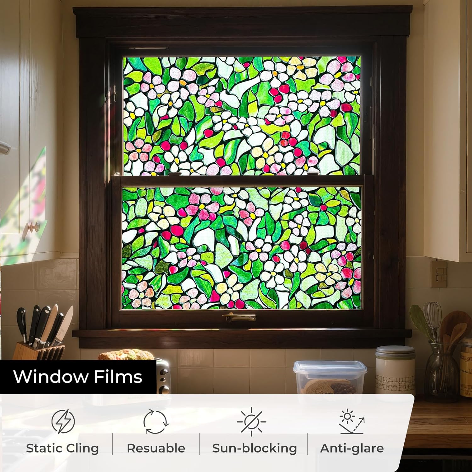 3D Stained Glass Window Film, Decorative Window Privacy Film for Bathroom,Front Door,Home, Sun Blocking Heat Control,Static Cling,23.6inch x 35.4inch Blossomray