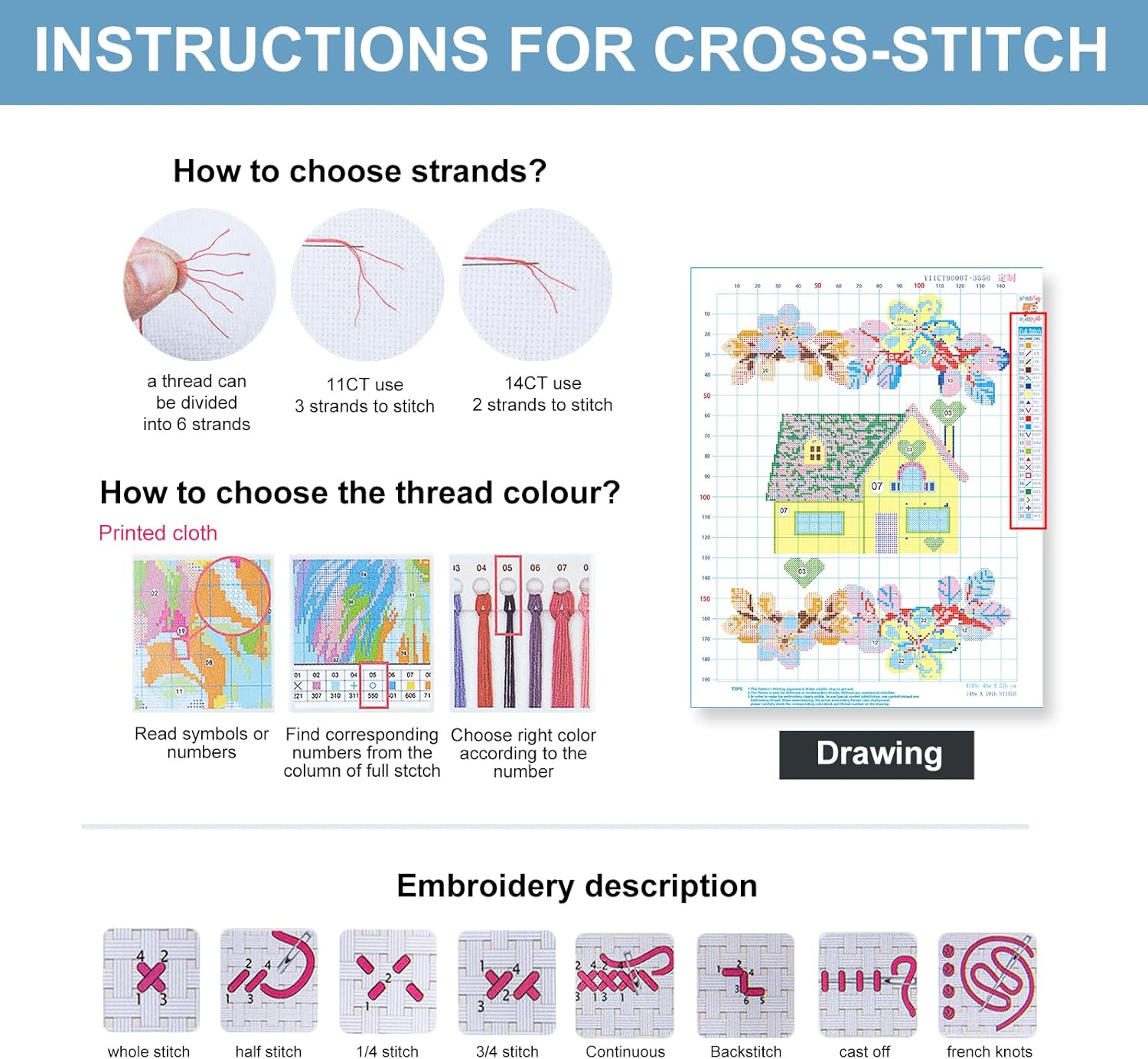 - 【Product Introduction】Cross stitch kits Includes one embroidered piece of 11CT medium grid cotton fabric,a pair of hanging scrolls, a set of embroidery threads, as well as the small tools needed for embroidery, and a simple and easy to understand manual, do not require additional purchase.