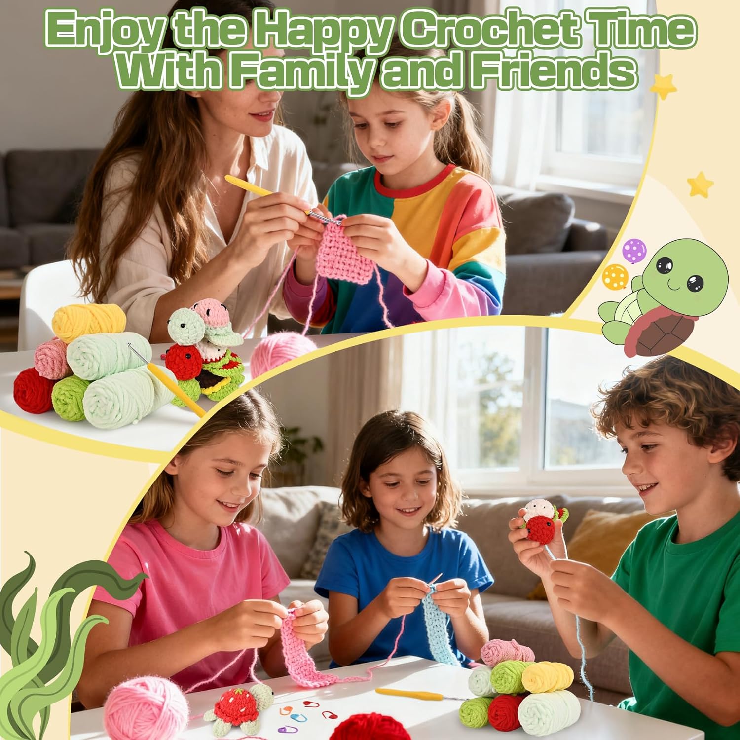 DetFinns Crochet Kit for Beginners, Crochet Starter Kits with Step-by-Step Video Tutorials, DIY Craft Kits Knitting Supplies for Kids, Adults, Beginners, 5 Packs Turtle Party (40%+ Yarn)