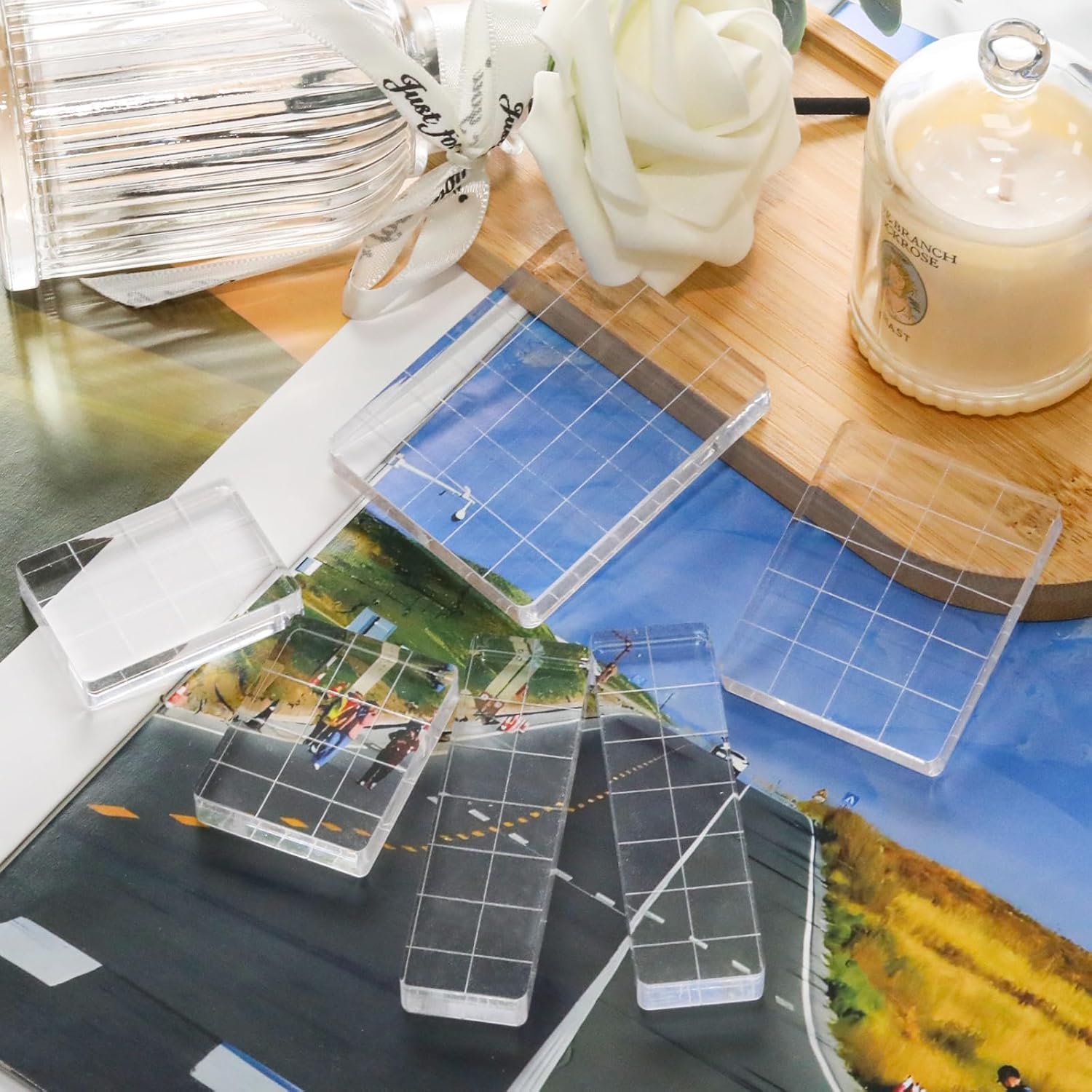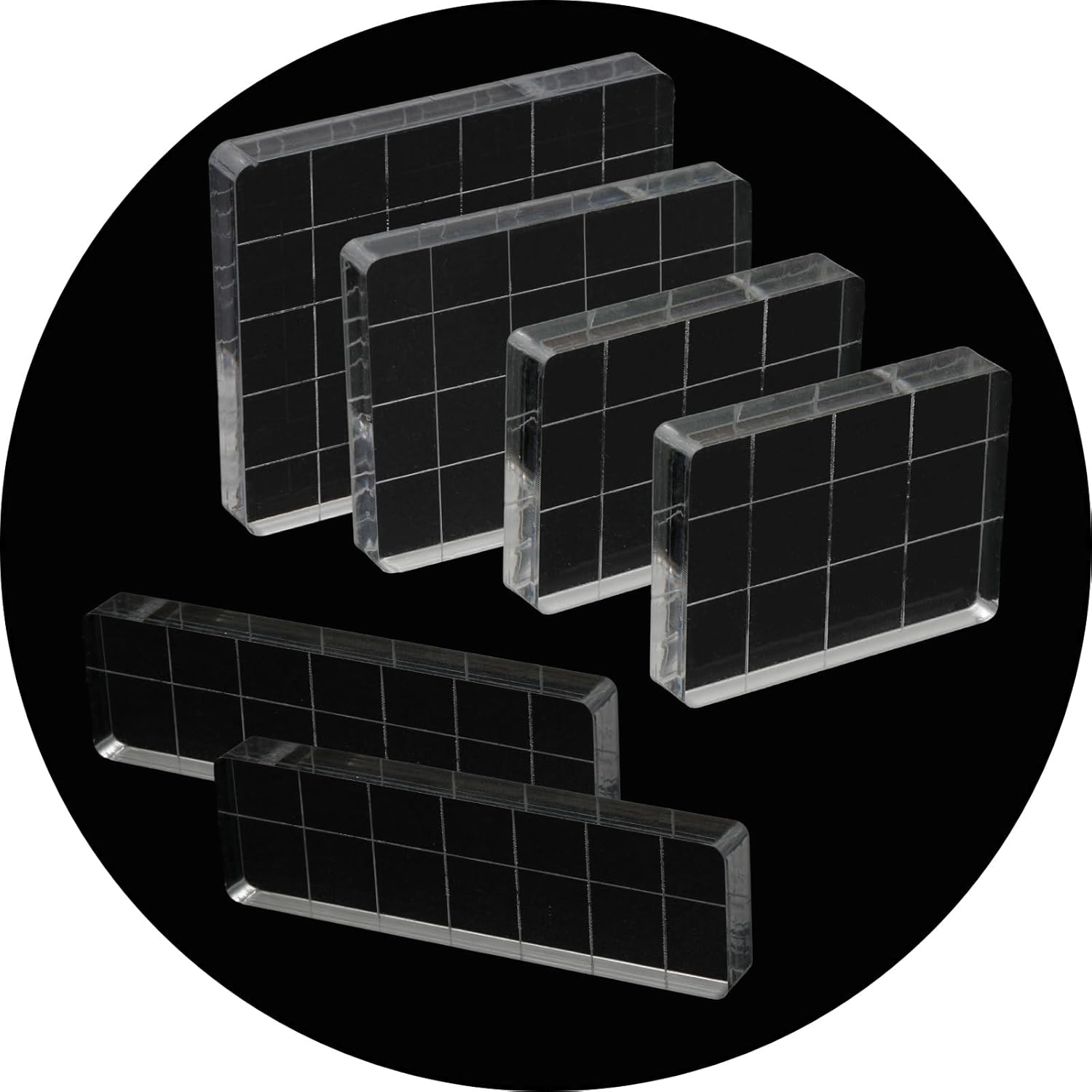 Pine & Linen 6 Pack Clear Stamp Blocks, Acrylic Tools Grid Lines Set, Scrapbooking Crafts for DIY Crafts/Scrapbooking/Card Making/Ornaments/Stamping Projects(Style-1)
