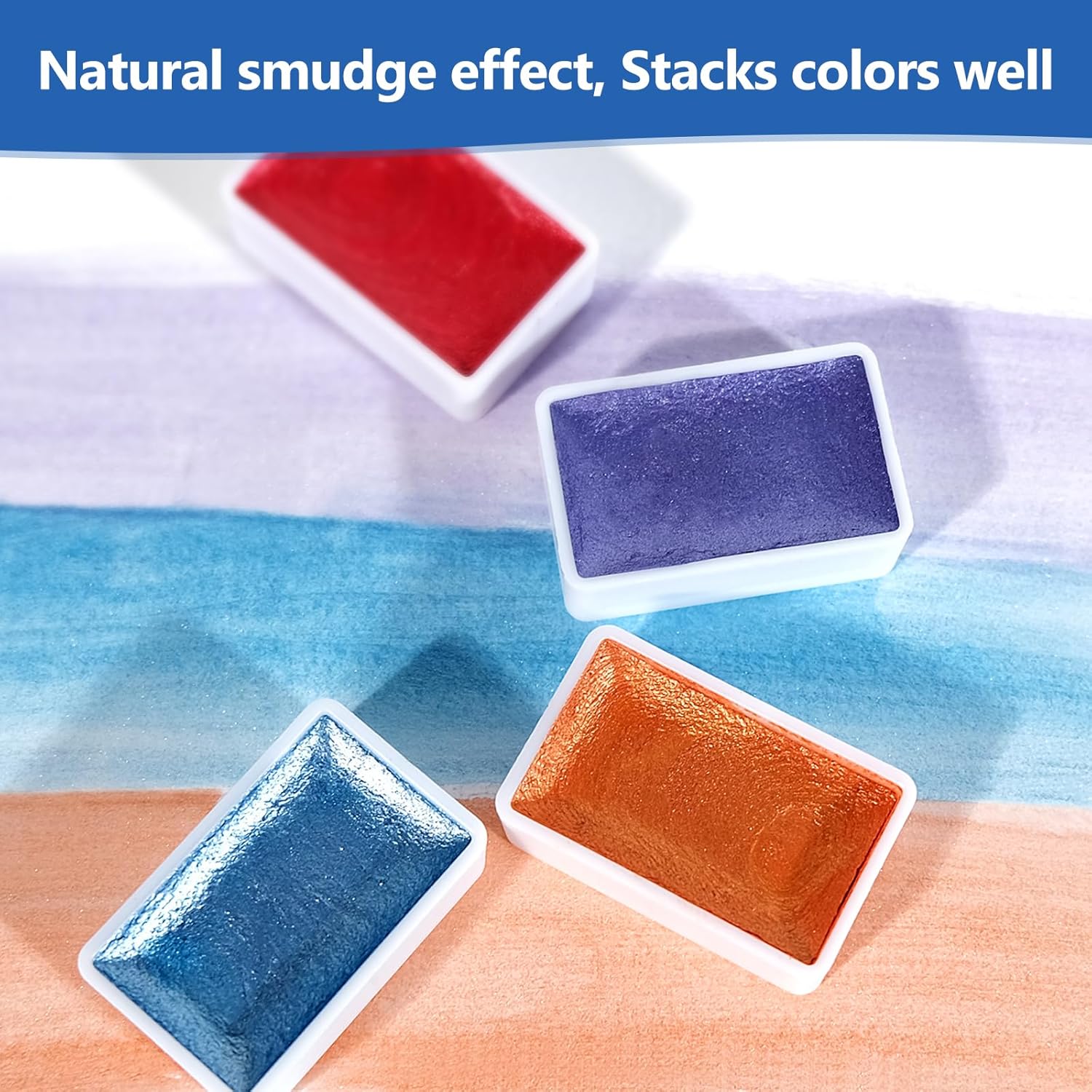 - 【Color-Bleedable & Smudgeable】Professional watercolor paint set achieve a smudge effect. Water paint also allow custom mixing and blending to create various colors. Due to high pearl powder content, color vibrancy is slightly affected, but combining with regular watercolor paint sets enables an expanded color palette