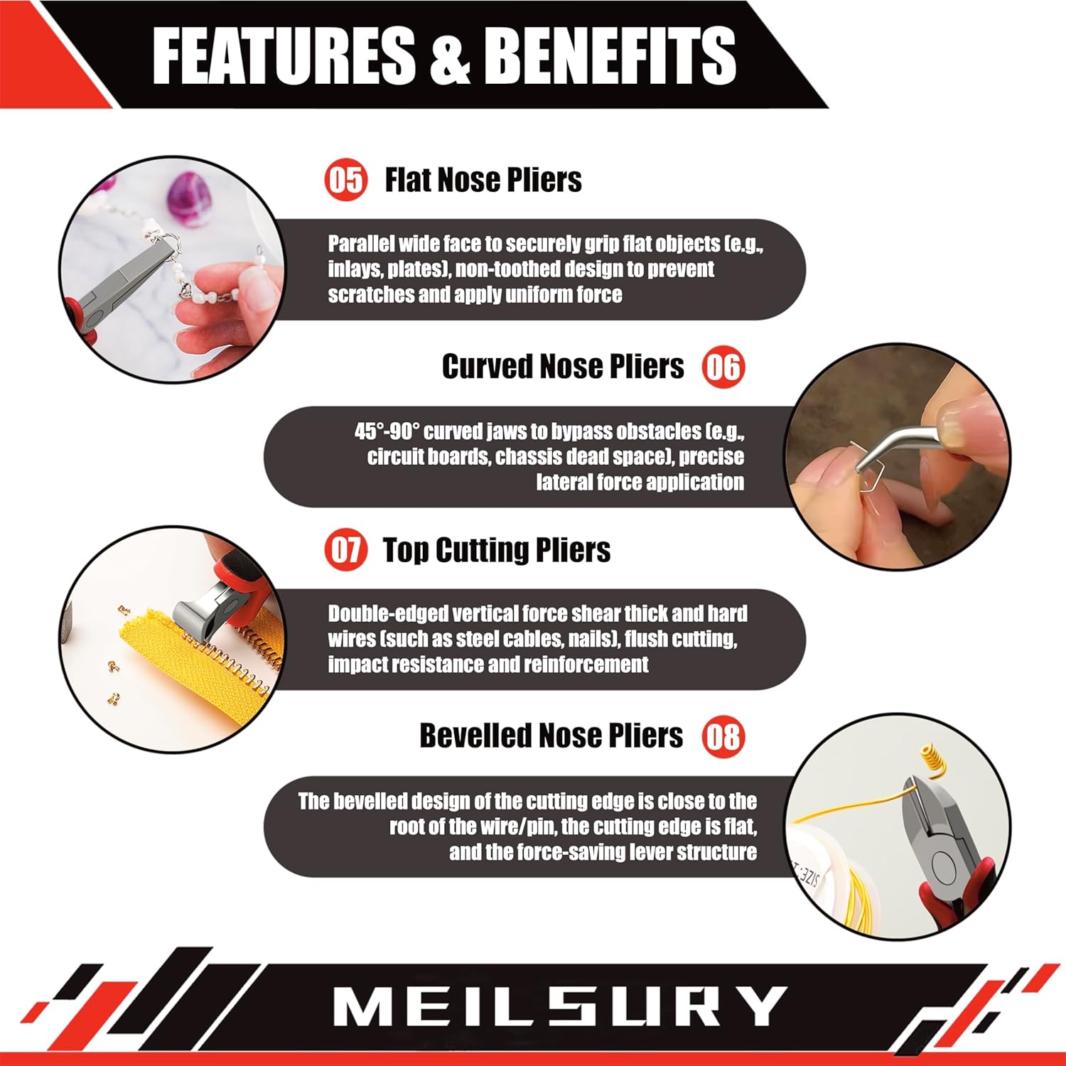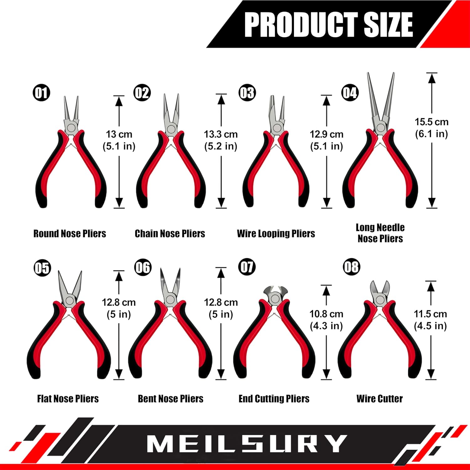 - All - inclusive contents:This set of 8 premium mini jewelry pliers tools has long nose pliers, chain nose pliers, round nose pliers, end nipper pliers, flat nose pliers, bent nose pliers, wire Looping pliers, and wire cutter. And it comes with a Wood Pallet.