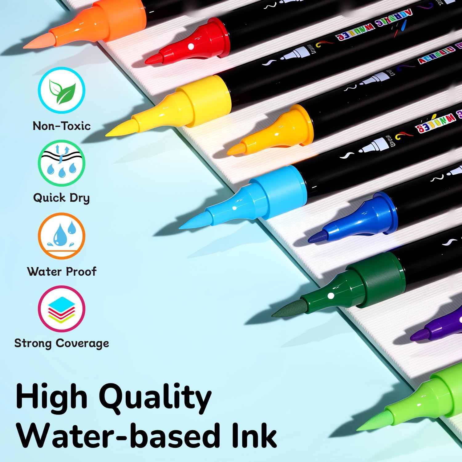 Acrylic Markers, 60 Dual-Tip Paint Pens for Rock Painting, Colouring Books, Mugs, Canvas Shoes, Metal, Scrapbooking - Quick Dry, Brush & Fine, Drawing Markers, Classrooms Must Have