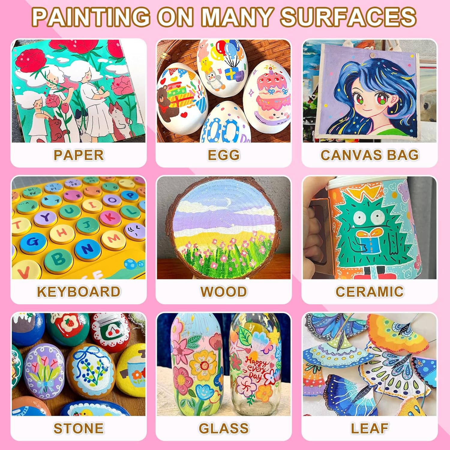 - 🌟Multi-Surface Application – From rocks and shoes to mugs and greeting cards, these acrylic paint pens deliver stunning results on almost any surface. This versatile acrylic markers set works on wood, glass, plastic, ceramic, stone, and metal, making it one of the most complete paint pens acrylic markers kits available