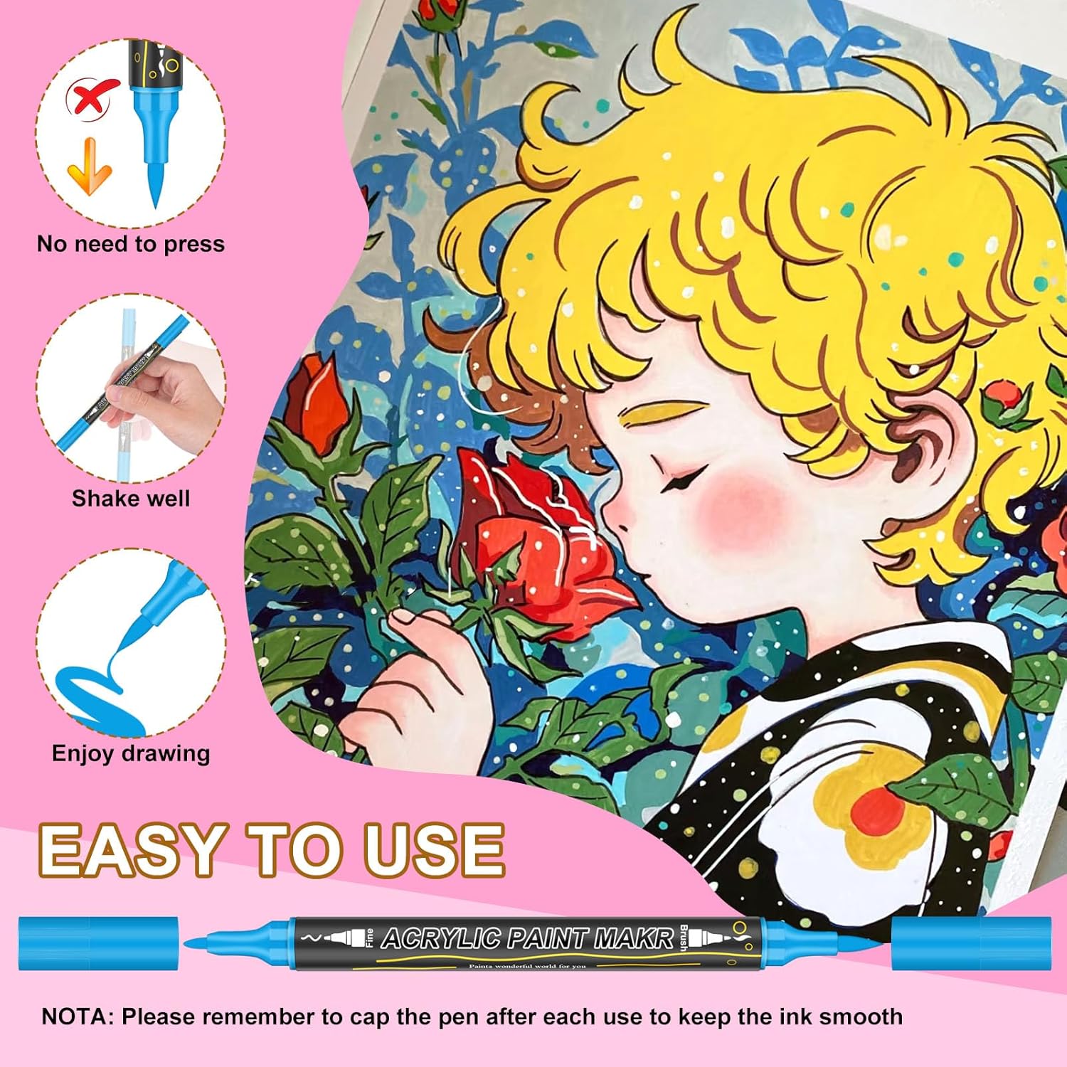 - 👩🎨 Perfect for All Skill Levels– Whether you’re a beginner or an experienced artist, these acrylic paint markers make it easy to create personalized gifts, DIY décor, and professional-quality artwork. Loved by kids, students, and professionals alike, these dual tips acrylic paint markers and marcadores acrílicos inspire creativity in every project.