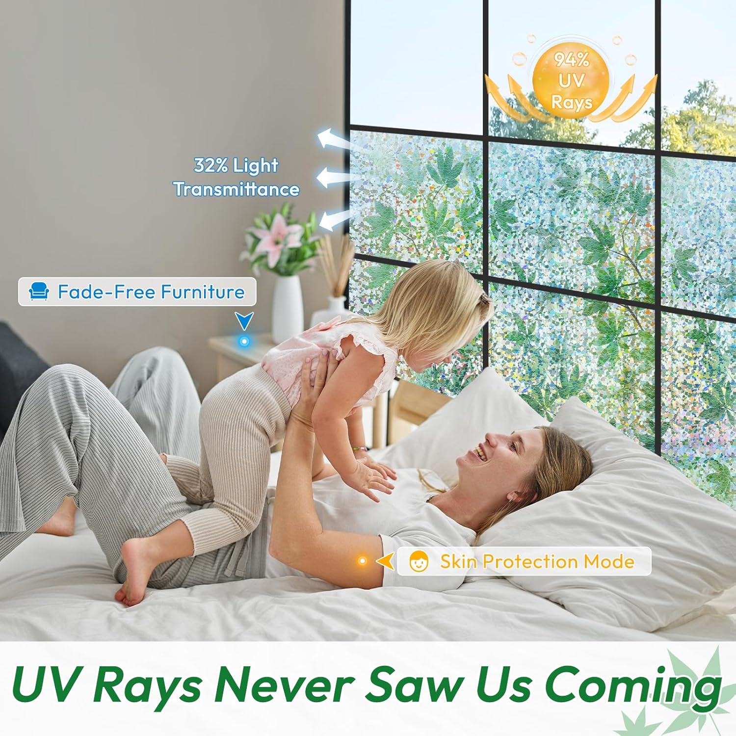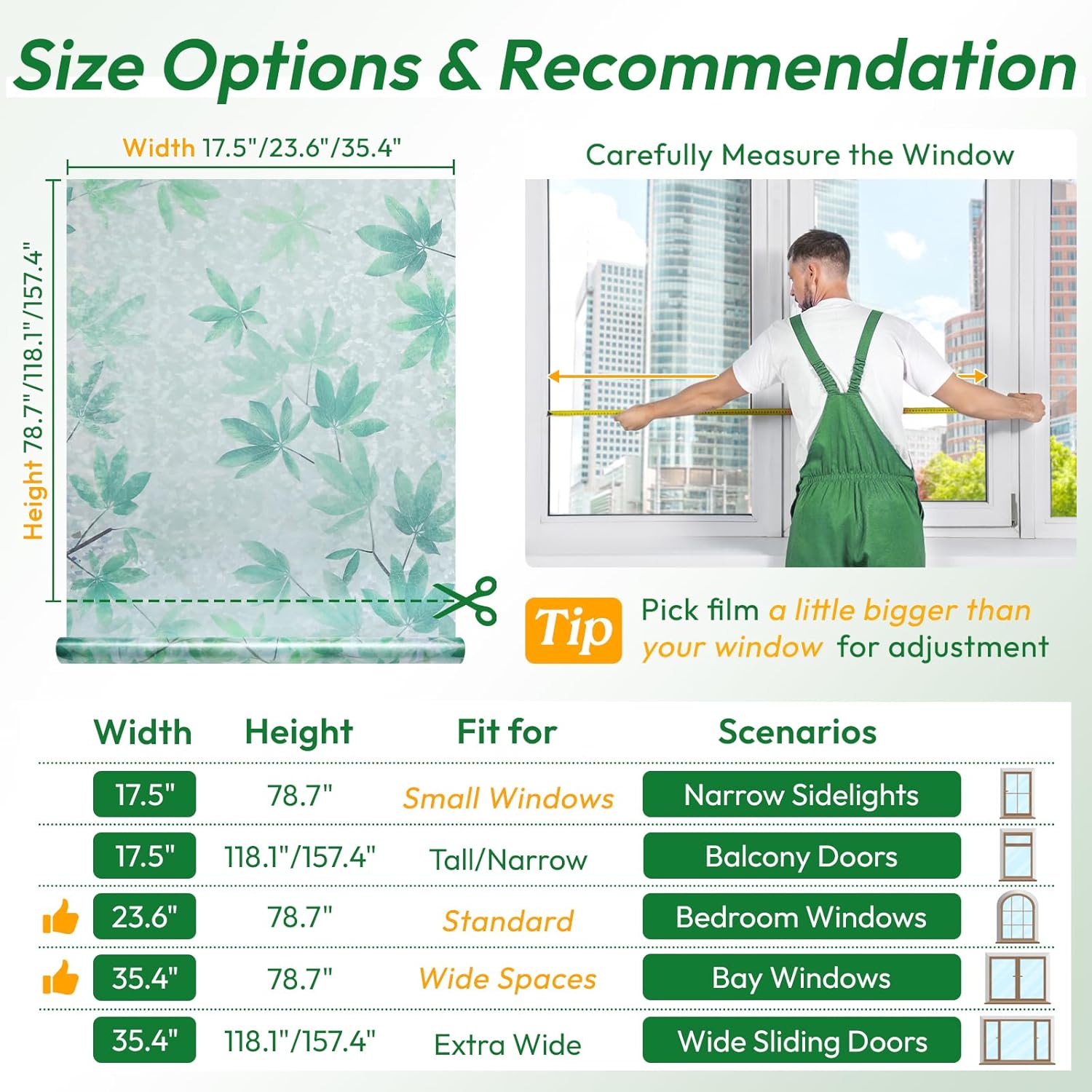 rabbitgoo Rainbow Window Privacy Film Decorative Stained Glass Diamond Pattern Window Sticker with Iridescent Tint Non-Adhesive Static Cling for Home Office Bathroom, Green Leaf 23.6 x 78.7 inch
