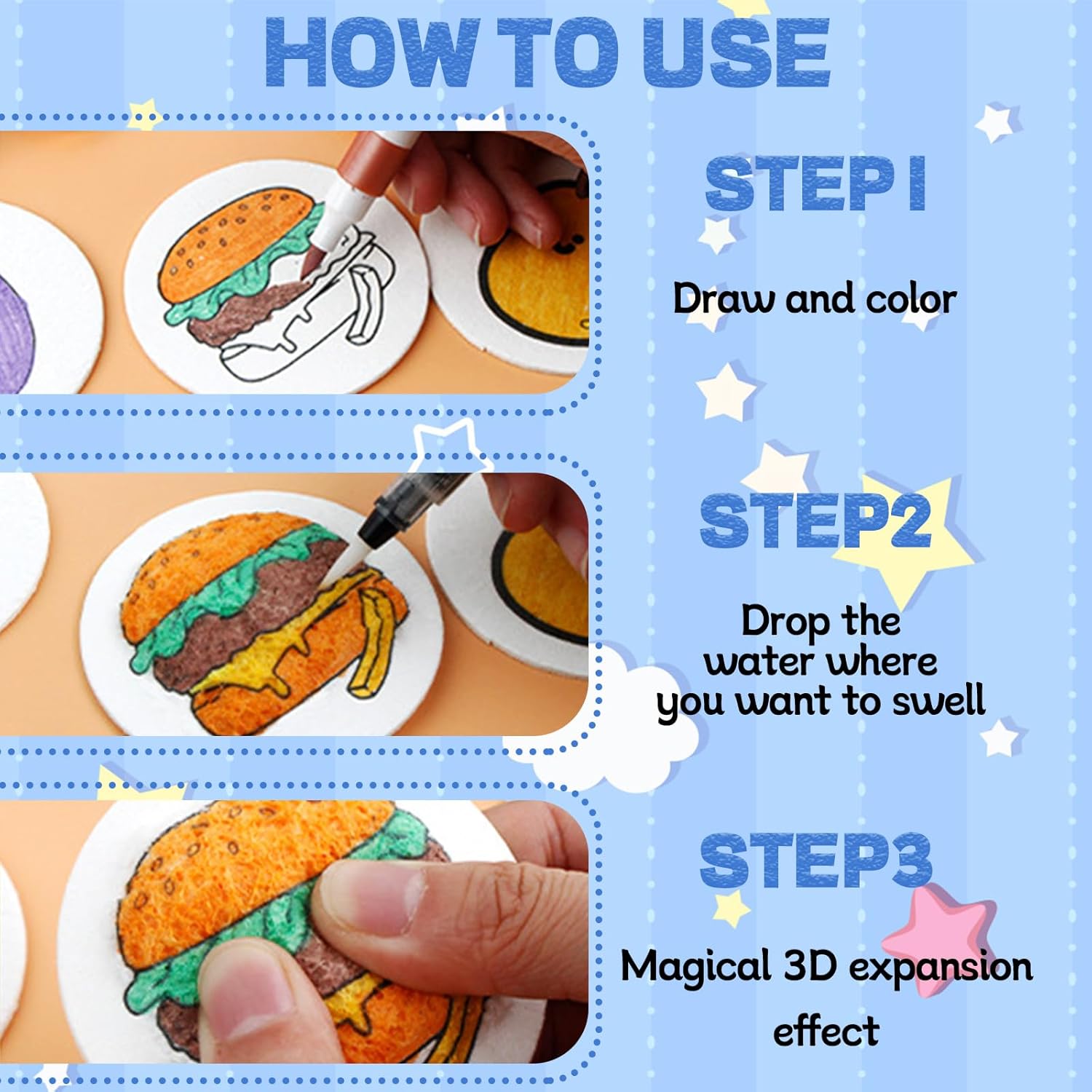 - 【 Endless Creative Possibilities 】 The magic puffy painting kit is perfect for kids’ crafts, DIY projects, holiday decorations, or relaxing art therapy. It can make kid's doodles and paintings interesting and vivid and it is also a good way to stimulate imagination and get everyone engaged for several hours. It can be used in combination with markers, crayons, pens, etc.! Ideal for greeting cards, posters, school projects, and unique handmade gifts.