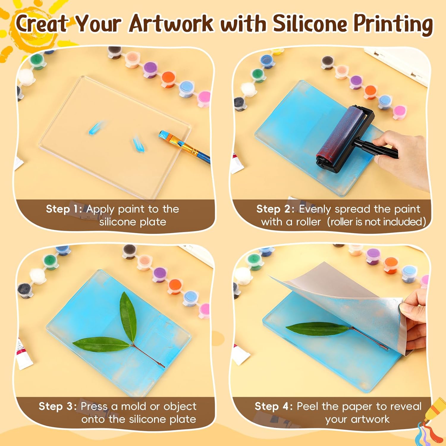 - Easy to Use: transform your ideas effortlessly with our silicone plates for printing; Simply apply paint, create your design, press transfer to paper with roller, and reveal your masterpiece; The non-sticky nature ensures your paper effortlessly releases from the silicone printing plate, yielding a nice print every time