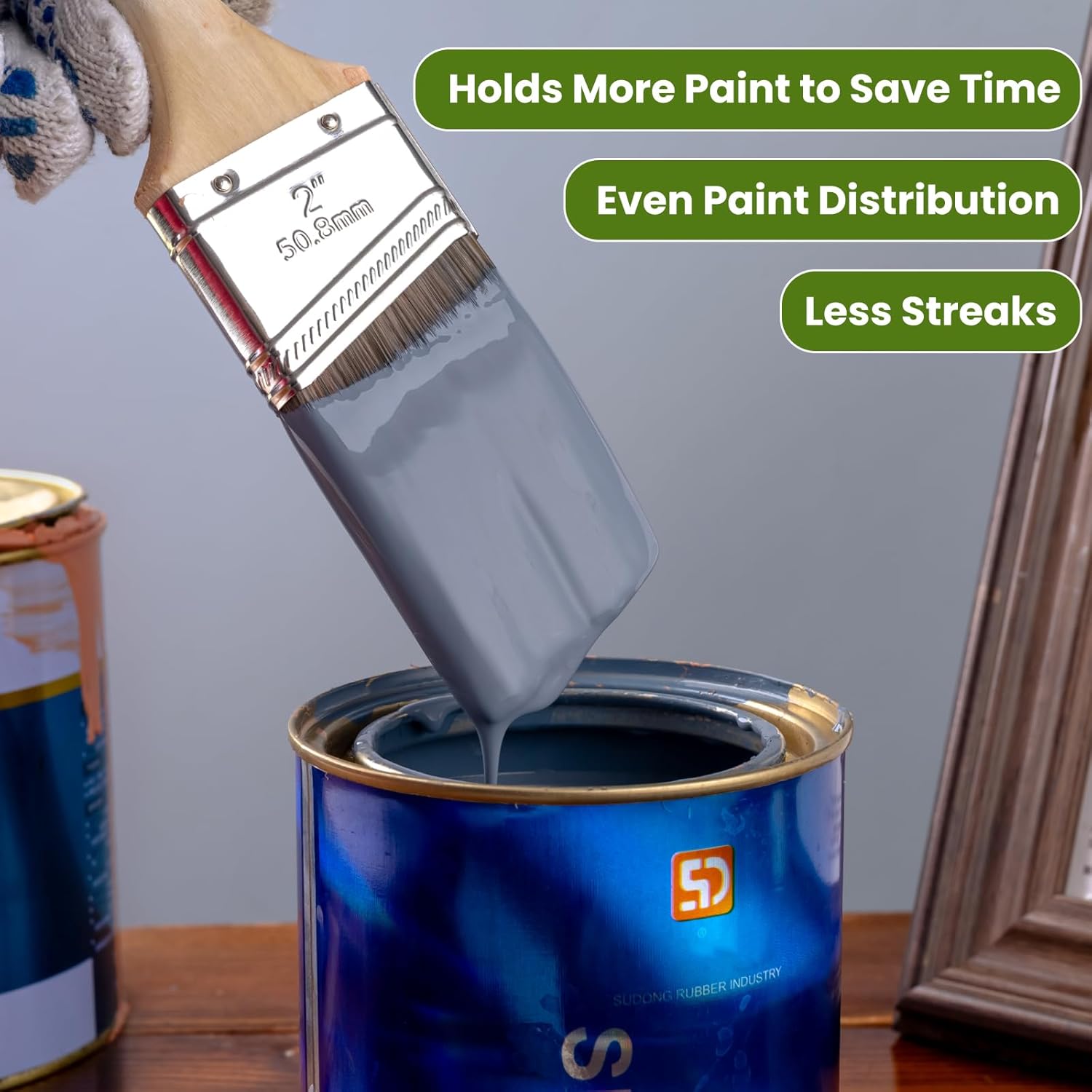 - Precision Angled Edge: Our YiBaiBrush Paint Brushes feature 2-inch angled bristles that easily cut in edges and corners, delivering crisp lines on trim, cabinets, and walls. Perfect paint brushes for walls and DIY projects