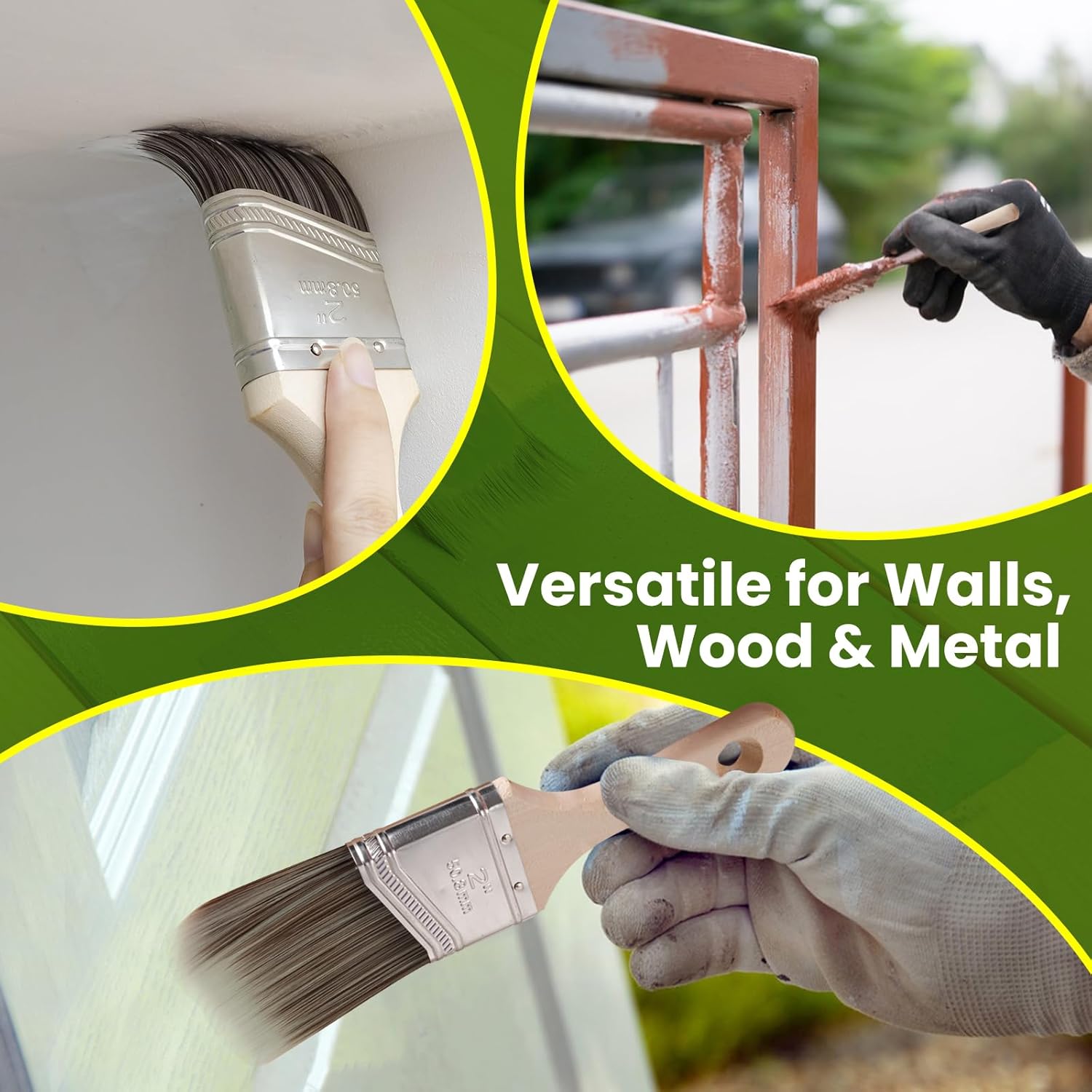 - Durable & Rust-Resistant: Crafted with high-density synthetic filaments, these paint brushes resist shedding and hold maximum paint. It is also easy to clean, reusable, and ensures long-term reliability. The stainless steel ferrules ensure durability with oil, latex, or stains, making them ideal for various painting tasks