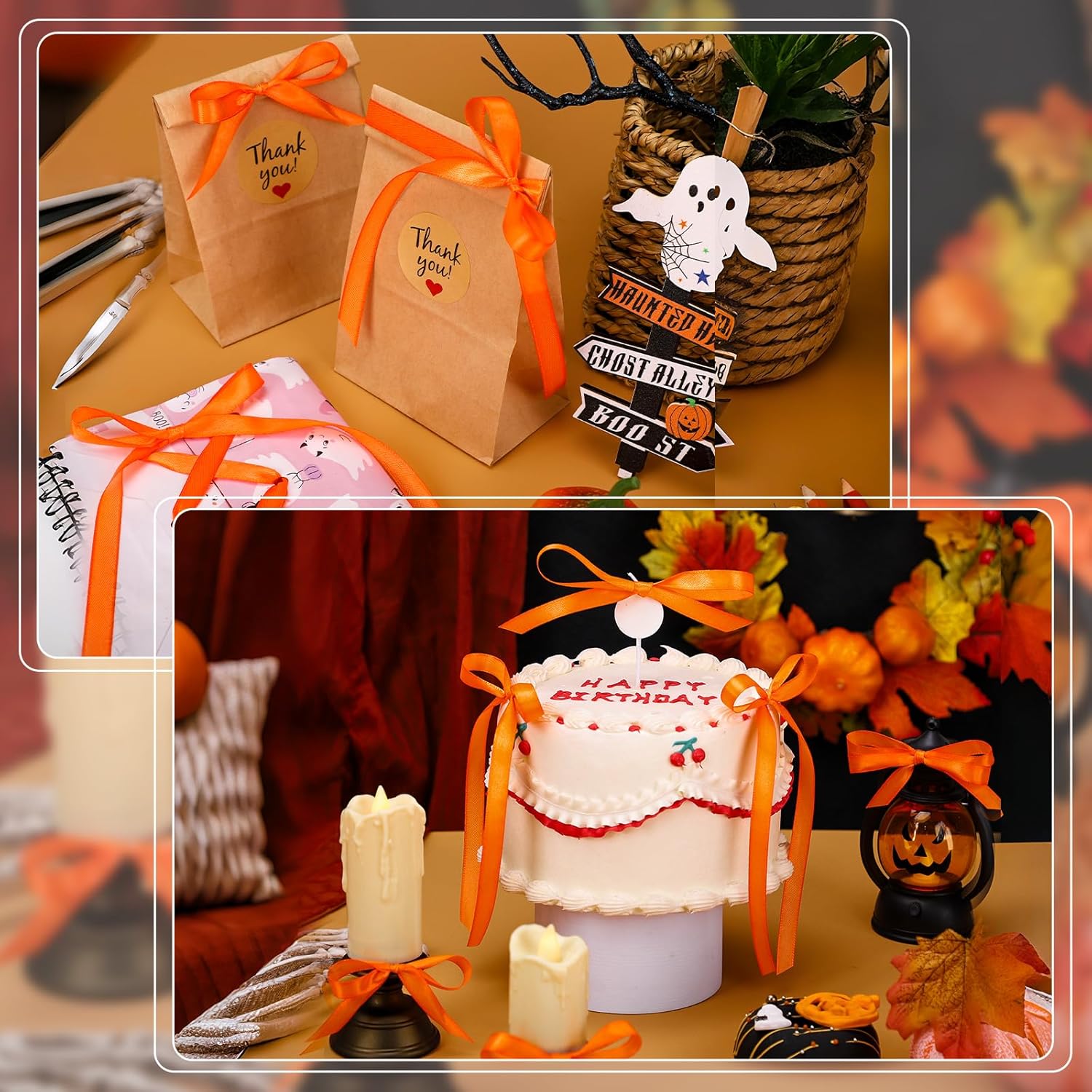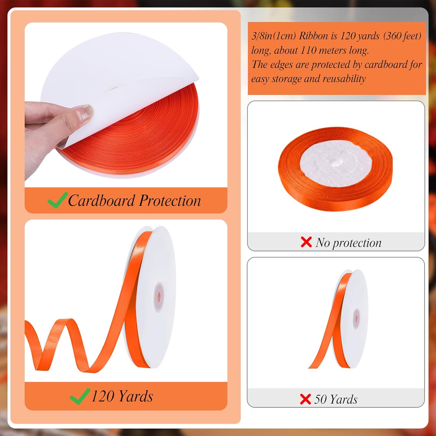 Orange Ribbon 3/8 Inch 120 Yards Thin Ribbons Halloween Satin Ribbon for Fall Decor Hair Bows Sewing DIY Crafts Balloon String Gift Wrapping
