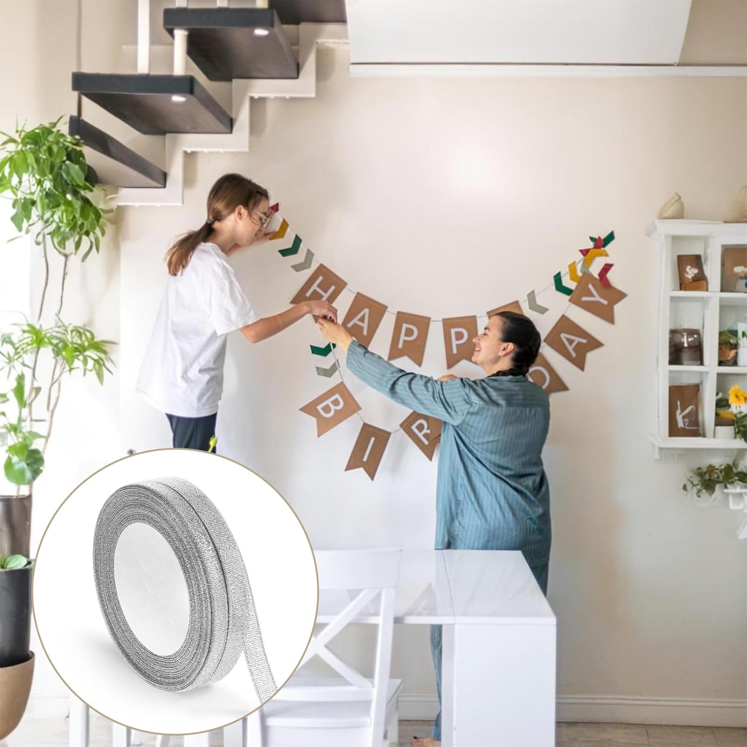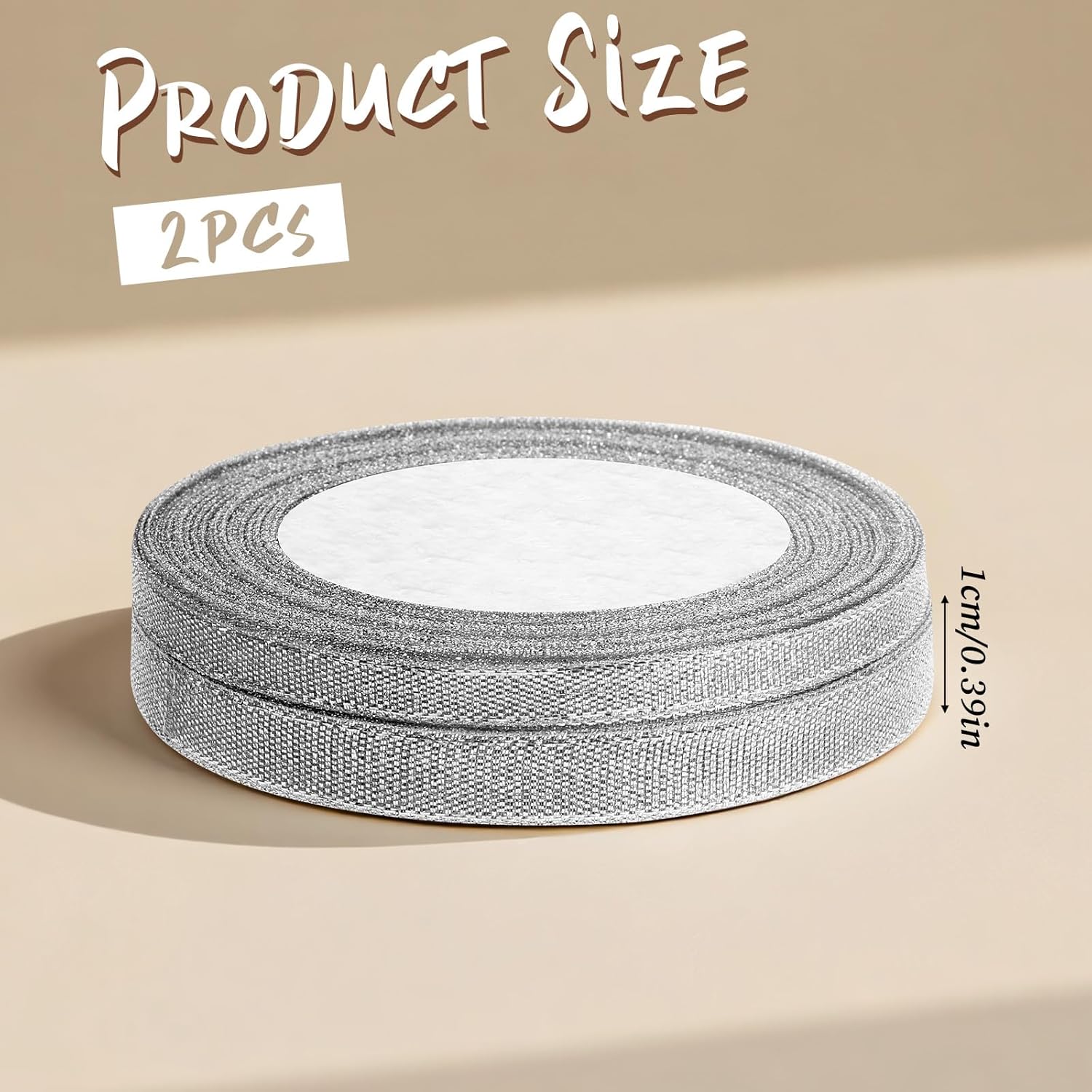 - Product Packaging: Contains 2 rolls of silver glitter ribbon, each roll is 25 yards long, totaling 50 yards of shiny ribbon