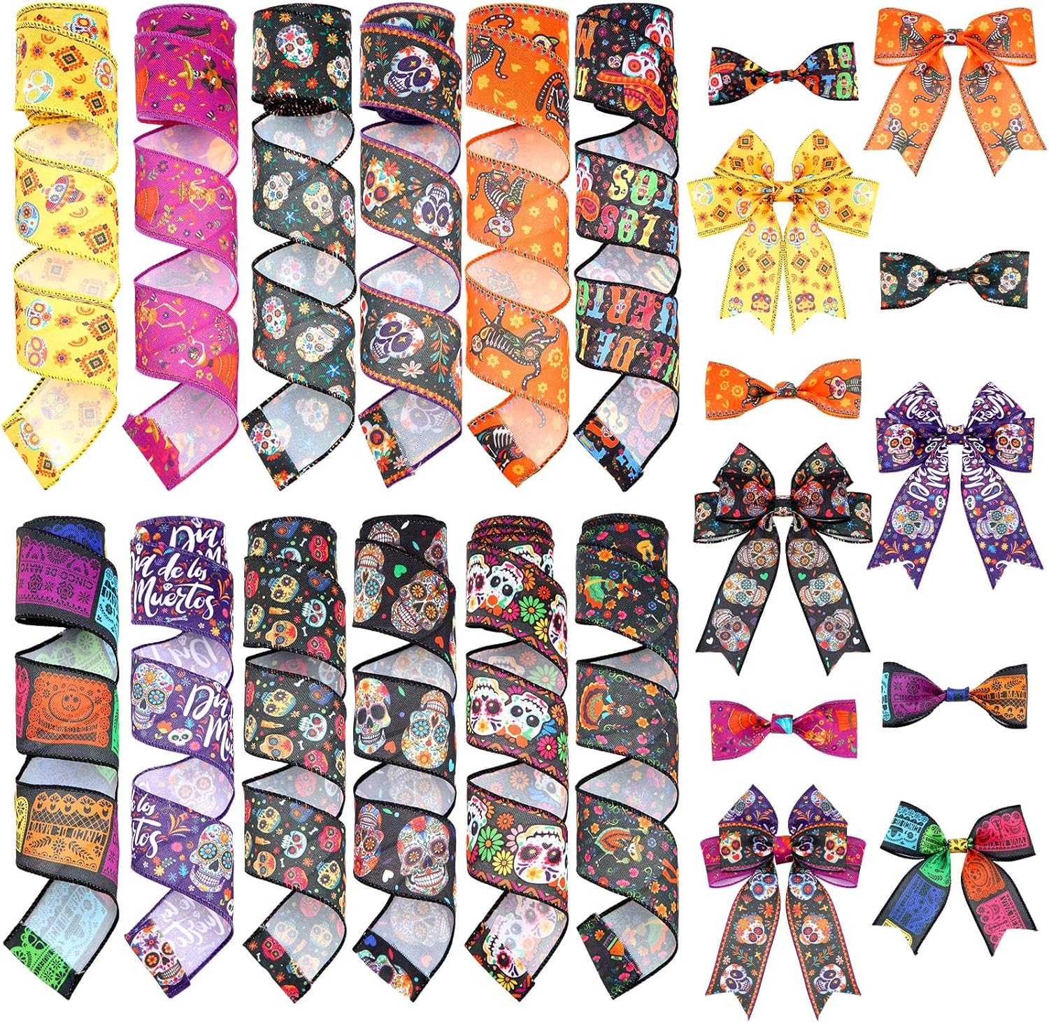 - Ample Quantity and Ideal Size: crafted to meet your decoration needs, our Day of The Dead ribbon comes in a set of 12 rolls, providing ample supply for all your needs; Each roll is approximately 5 yards long and 2 inches wide, providing you with ample ribbon to create beautiful Halloween crafts and decorations