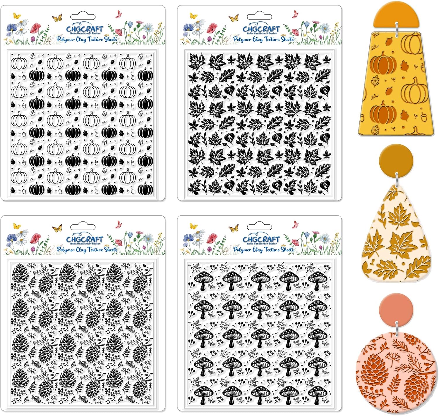 - What's Included: You’ll get 4pcs pumpkin maple leaf pattern silicone clay texture mat (approx. 5.5x5.5 inches / 14x14 cm), ideal for crafting polymer clay earrings, jewelry, and more, high quality clay texture mat is perfect for crafting