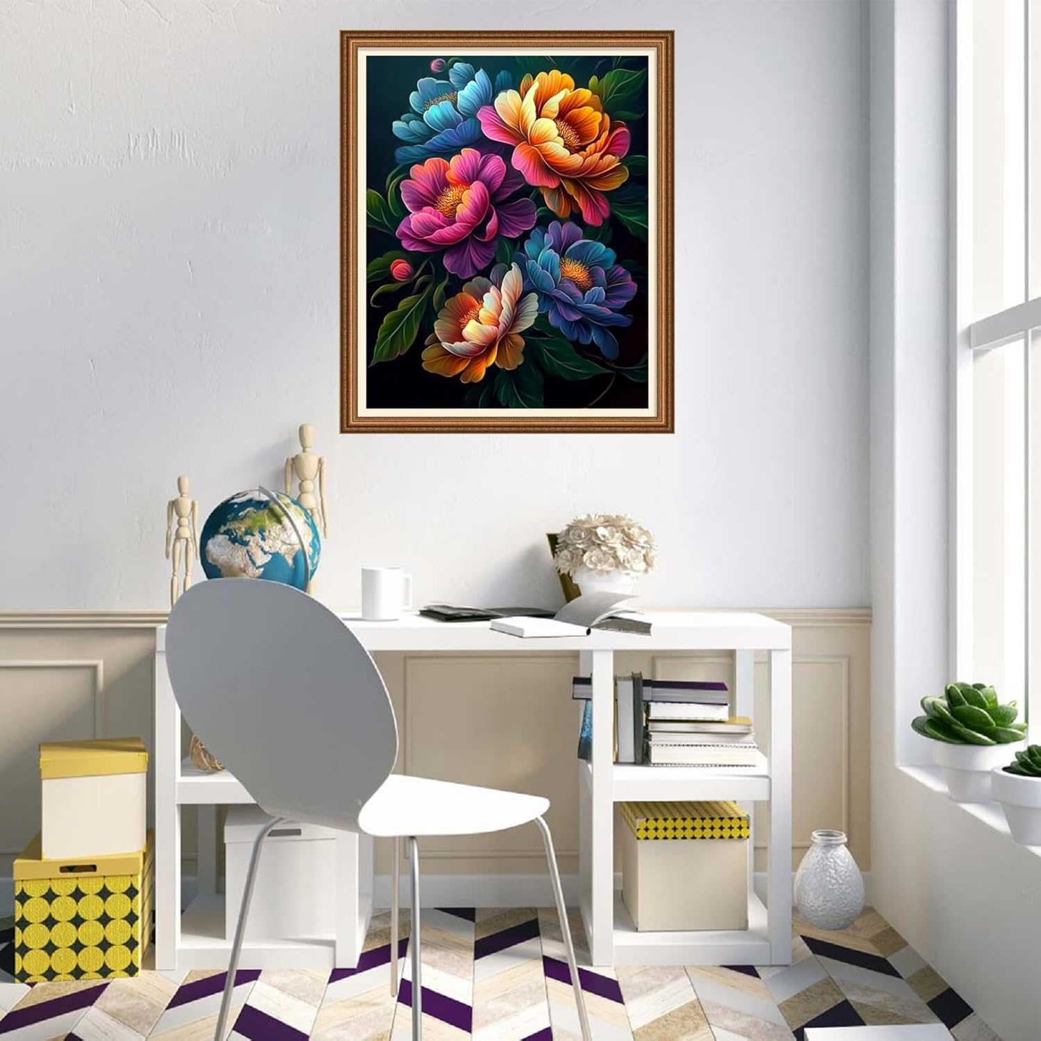 Disnesart Cross Stitch Stamped Full Embroidery Kits DIY 11CT Cotton Thread Printed DIY Needlepoint Kits Craft Needlework Set Cross-Stitch Stamped Sets-Magical Flowers 16x20 inch