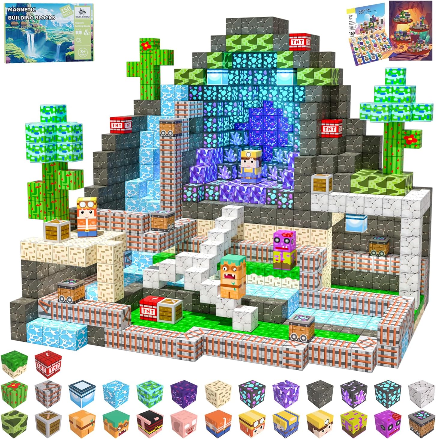 - Magnetic Building Blocks for Kids: This set includes 150pcs magnetic blocks in 28 distinct designs, plus a creative storybook packed with step-by-step building patterns. Itβs the perfect screen-free activity to spark imagination, kids can follow the illustrated guides or design their own structures from scratch.
