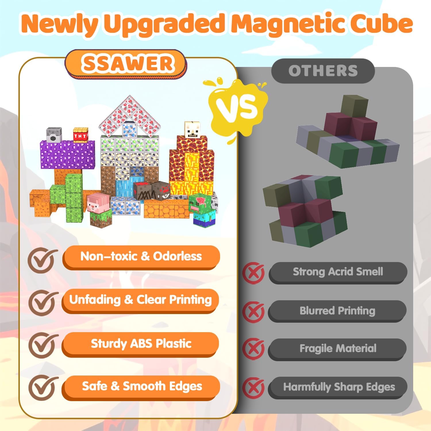 - Premium Quality Material: Meet US toy standard and safety test approved. Our magnetic building blocks are made of durable ABS plastic, embedded with 8 magnetic contact points to enhance magnetic force, perfect for kids of ages 3 4 5 6 7 8 9 10 11 12 to easily stick cubes together and build sturdy structures.