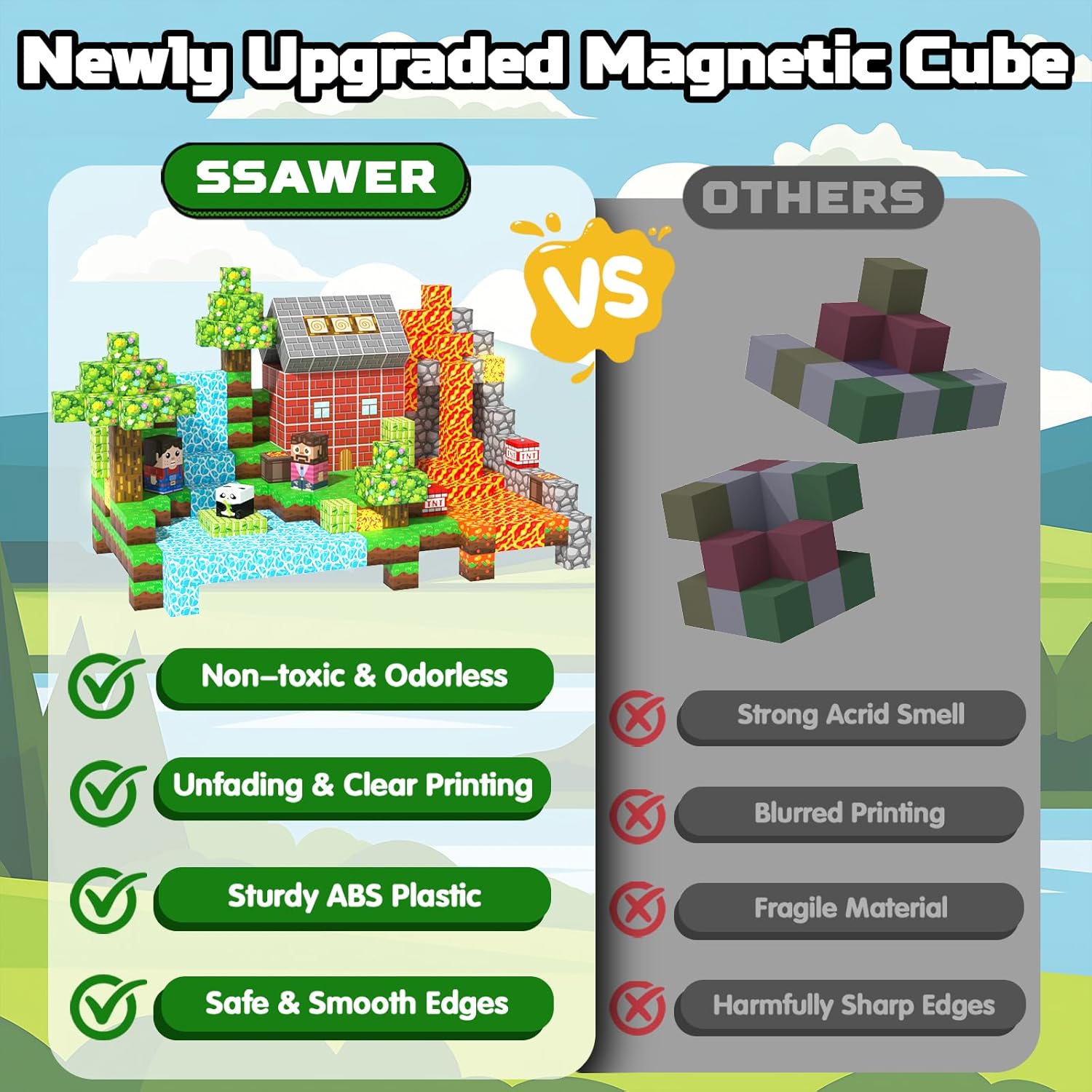 - Premium Quality Material: Meet US toy standard and safety test approved. Our magnetic building blocks are made of durable ABS plastic, embedded with 8 magnetic contact points to enhance magnetic force, perfect for kids of ages 3 4 5 6 7 8 9 10 11 12 to easily stick cubes together and build sturdy structures.