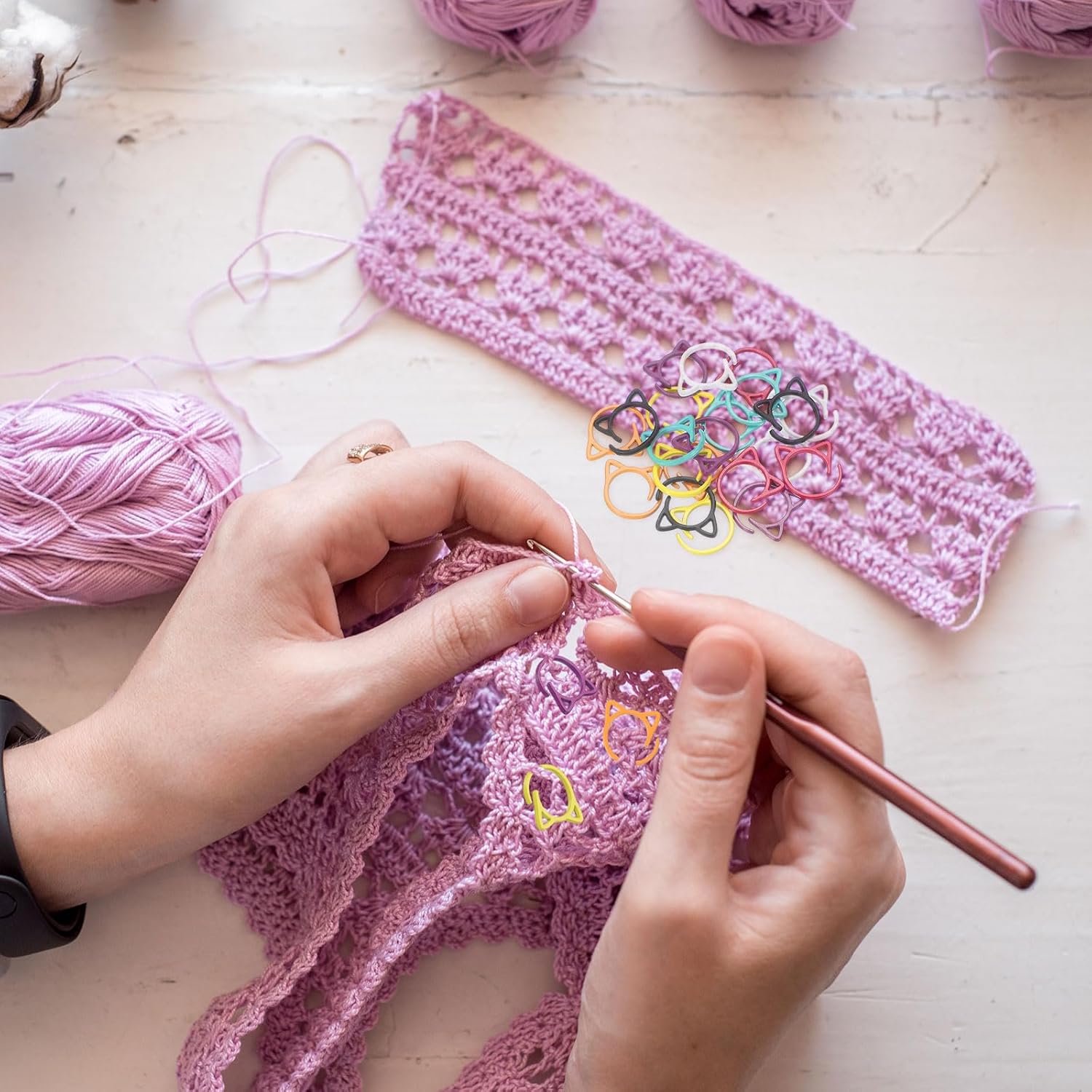 - Versatile Applications: These colorful metal crochet stitch markers are versatile. In addition to marking stitches, they can also be used as everyday accessories, clipped onto sweaters for a fun accent, or attached to crafts to create cute designs. These crochet stitch markers are a great helper for DIY knitting, crochet projects, DIY art projects, and other activities.