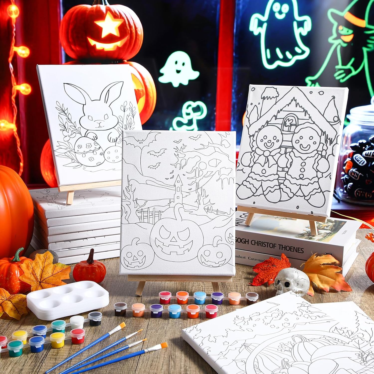 - Different Styles: our drawn canvas offer a variety of 12 different Halloween, Thanksgiving, Christmas, Valentine themed styles to choose from; This design can make sure there's a style that fits your taste and preference; Whether you're a beginner, a paint and sip going enthusiast, or an expert painter, our painting canvases with pictures to paint will help you craft stunning artworks effortlessly; Get ready to dive into the world of colors and creativity with our pre drawn canvas paint kit