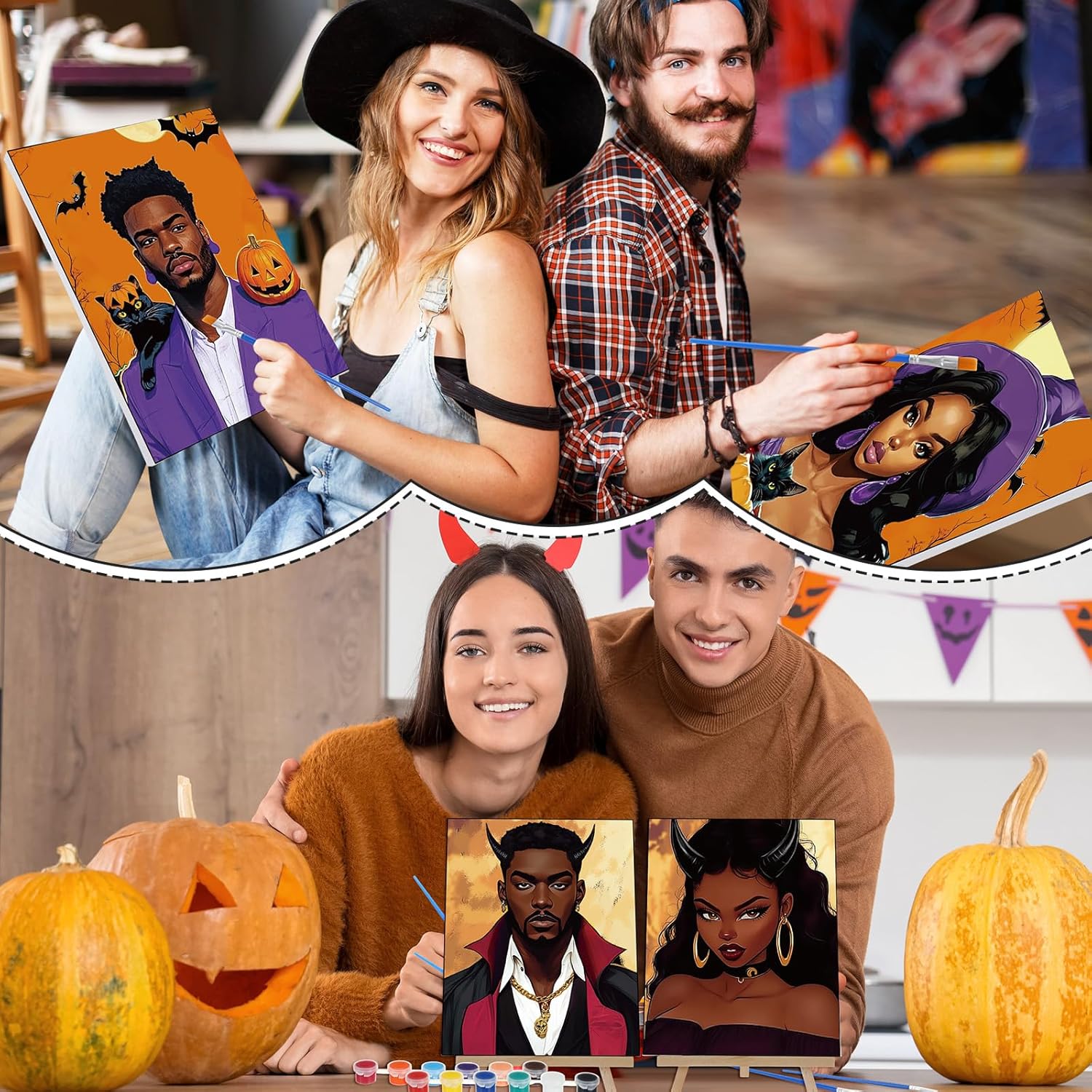Zhanmai 12 Pack Pre Drawn Canvas for Painting Sip and Paint Kit 8" x 10" Paint Party Set Canvas Painting Pre Printed Canvases for Party Favor DIY Virtual Adult's Date Night(Witch Couple)