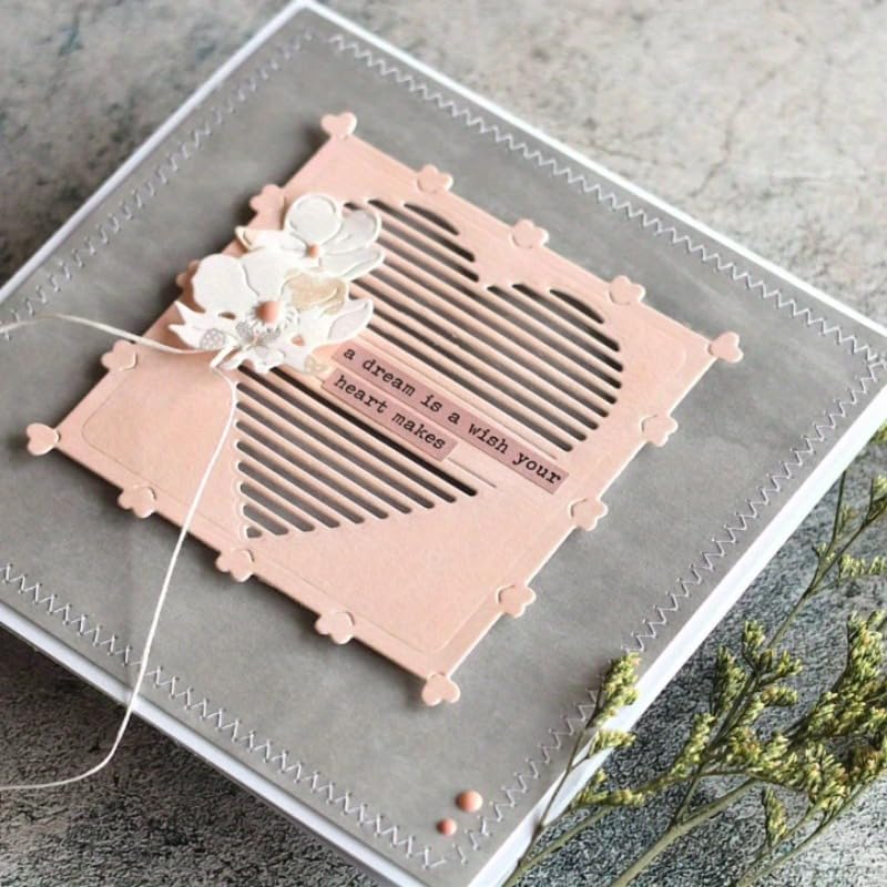 Lapoo Geometric Cutting Die for Scrapbooking - Durable, Cut Stencils for DIY Scrapbook Photo Album Decorative Paper Card, Card Making Supplies (Striped Heart 2.6 x 2.6 in)