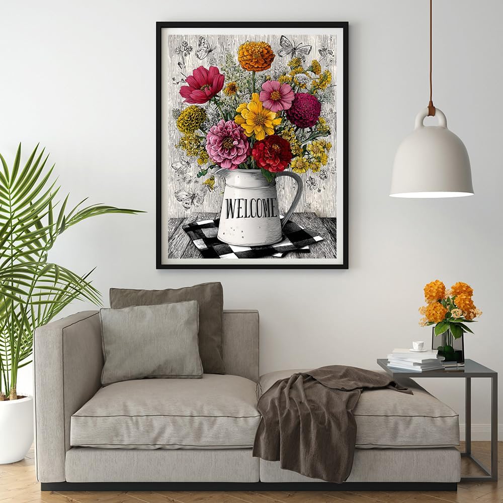 Moohue 14ct Counted Stamped Cross Stitch Kits for Adults Flowers Printed Cross Stitch Patterns Art Crafts Cross Stitch Supplies (Flowers 13)