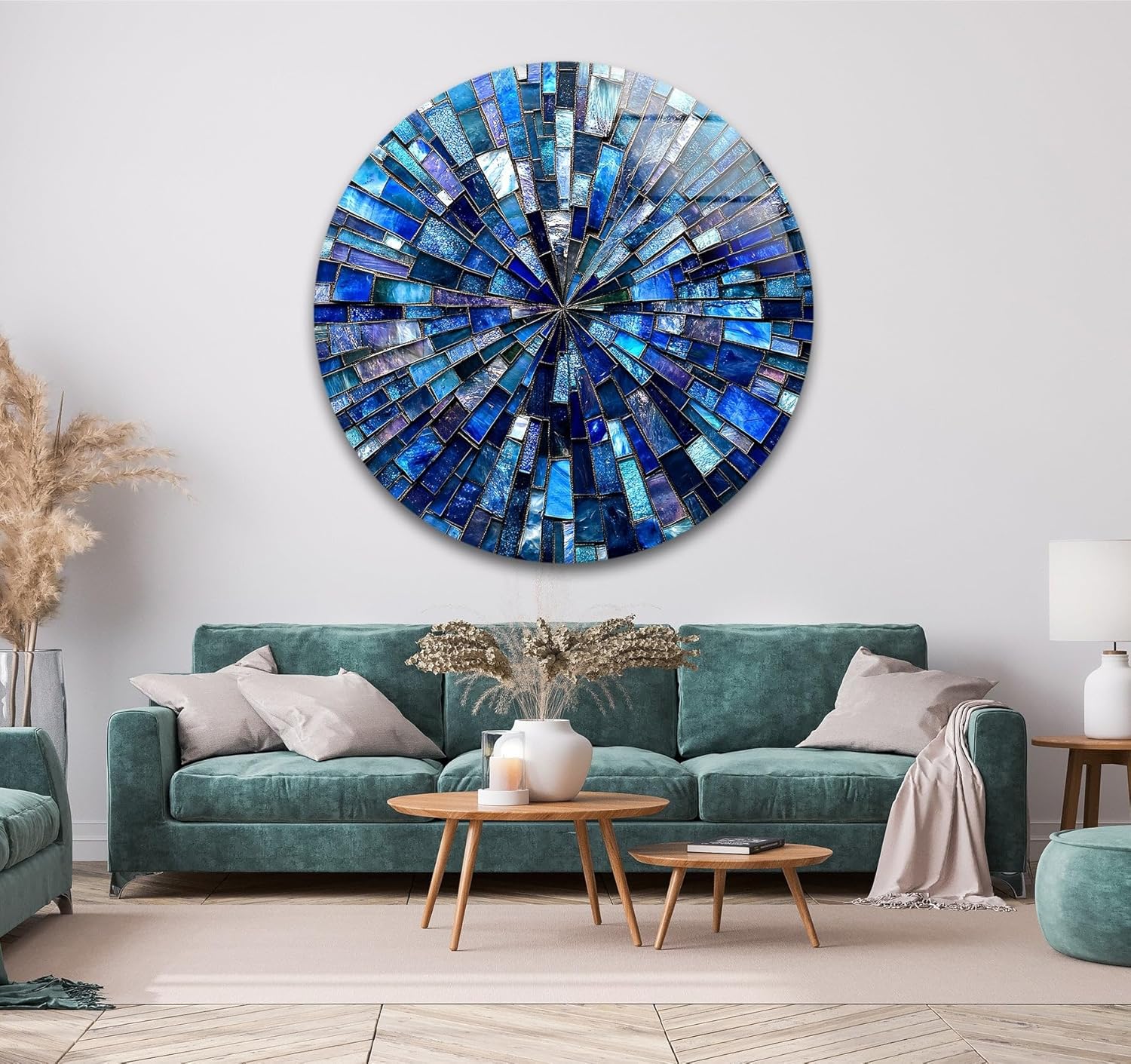 My Photostation.com 15.8''(40cm) Diameter Radiant Mosaic Burst Round Glass Wall Art Tempered Glass Printing Wall Decor Large Wall Art Wall Hangings