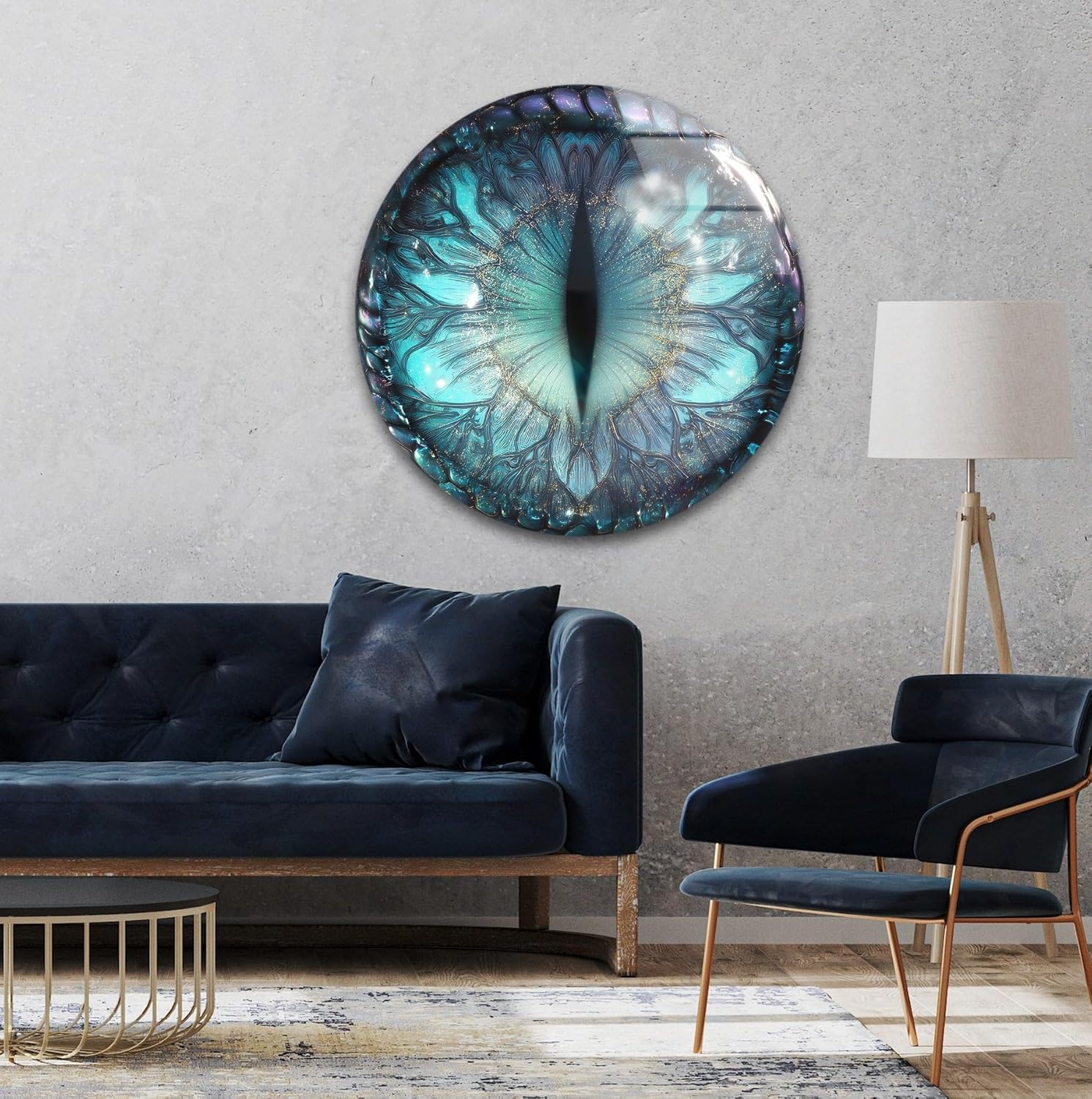 My Photostation.com 20''(50cm) Diameter Mystical Dragon Eye Round Glass Wall Art Tempered Glass Printing Wall Decor Large Wall Art Wall Hangings