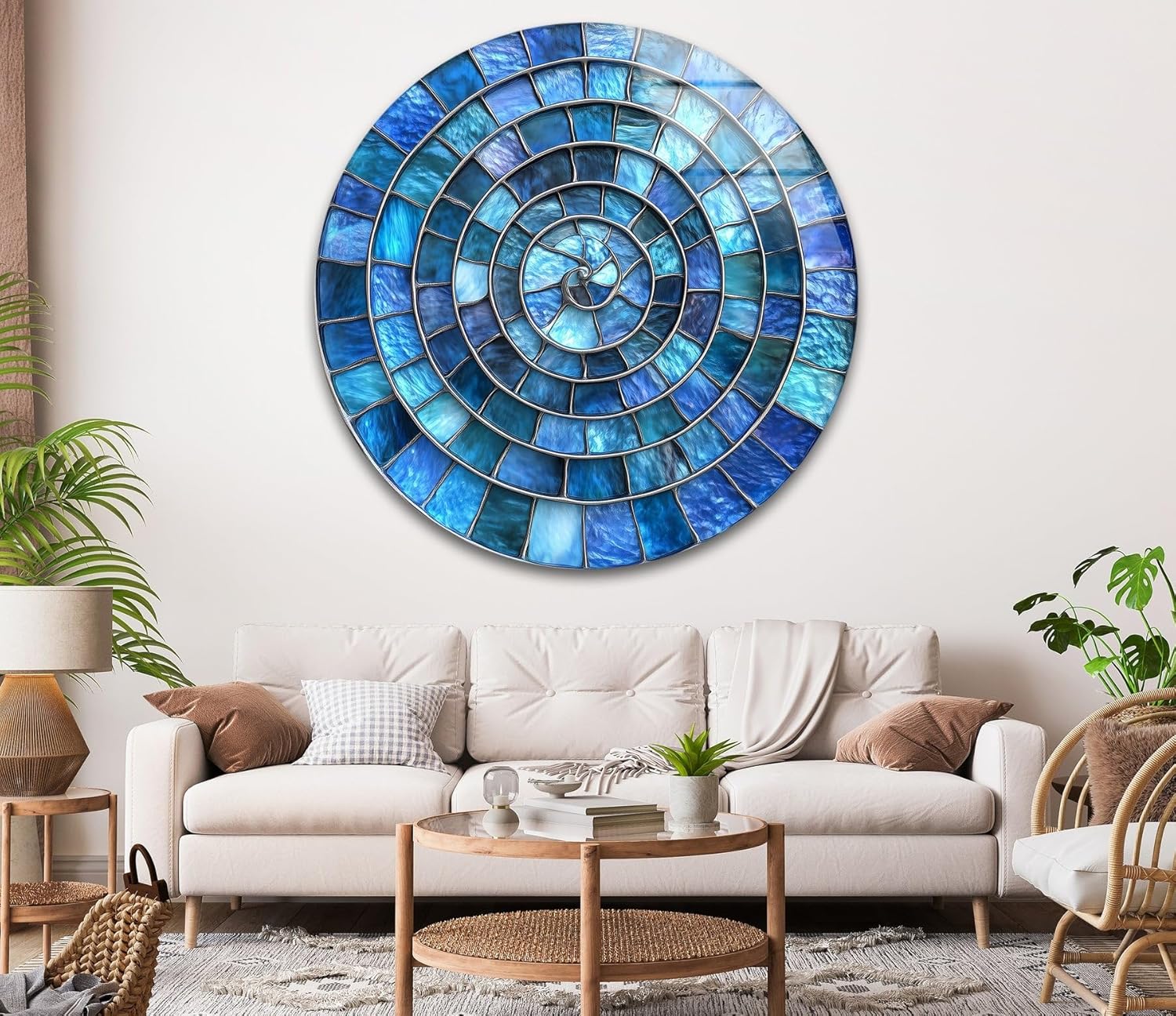 My Photostation.com 27.5''(70cm) Diameter Blue Aqua Spiral Harmony Round Glass Wall Art Tempered Glass Printing Wall Decor Large Wall Art Wall Hangings