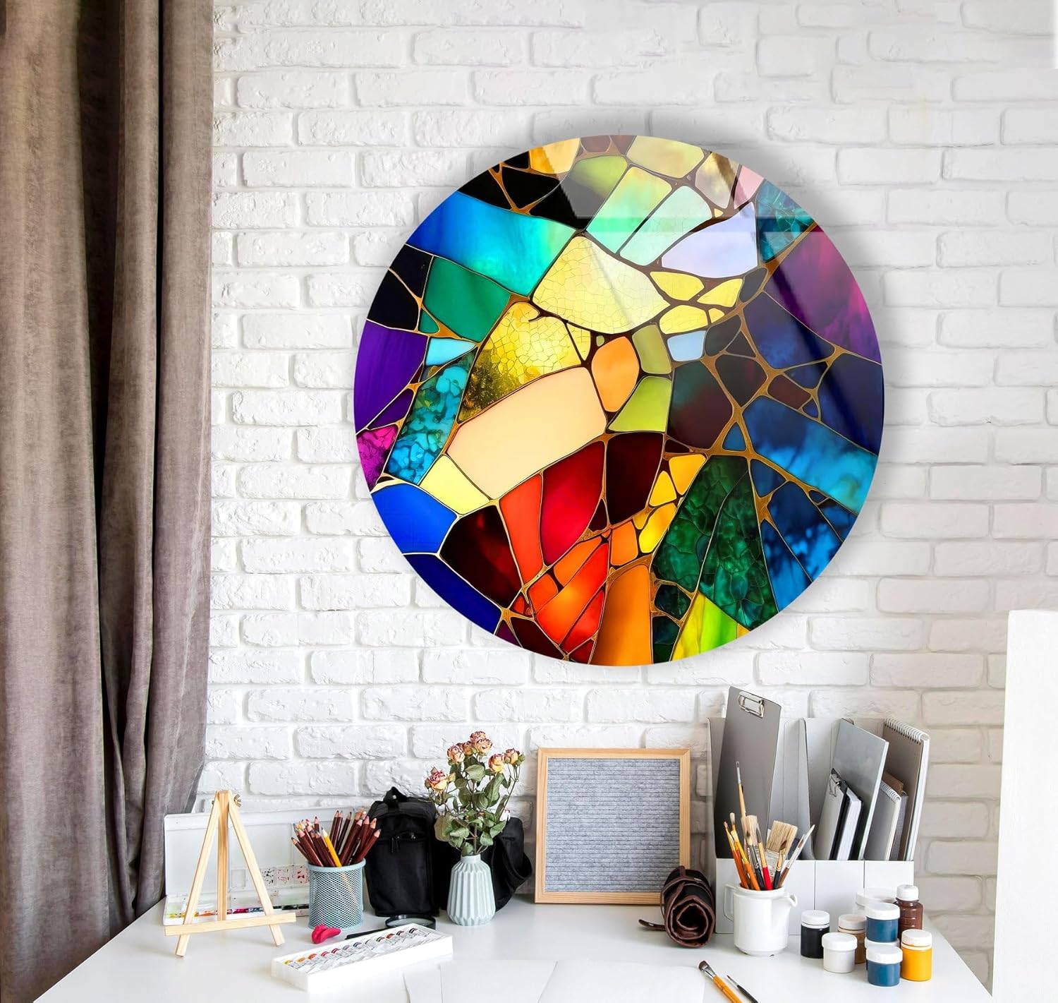 My Photostation.com 24''(60cm) Diameter Multicolor Round Stained Glass Wall Art Vibrant Mosaic Abstract Panel Tempered Glass Printing Wall Decor Large Wall Art Wall Hangings