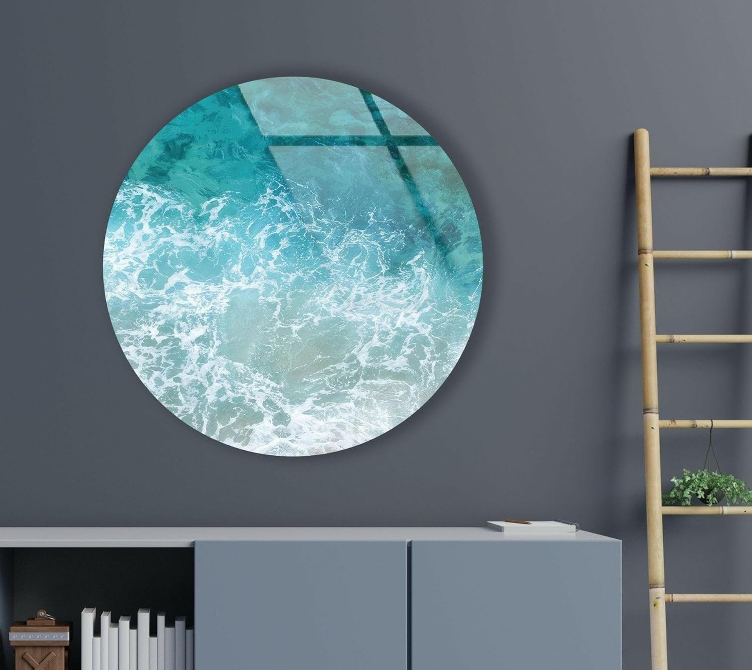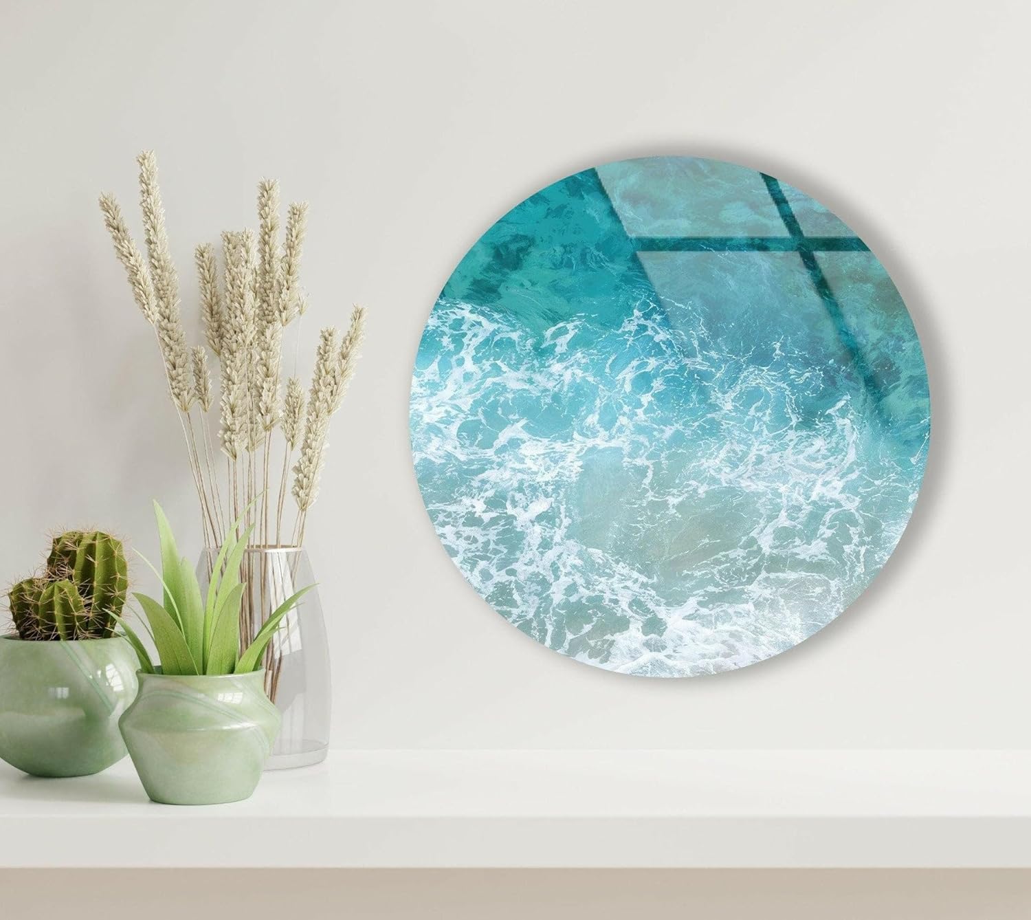My Photostation.com 20''(50cm) Diameter Sea Waves Round Glass Wall Art Tempered Glass Printing Wall Decor Large Wall Art Wall Hangings