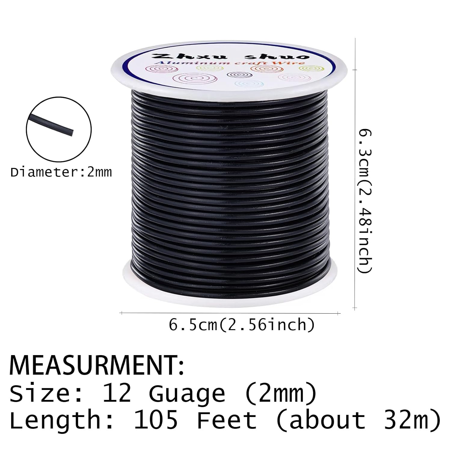 12 Gauge(2mm) Aluminum Wire 35 Yards Anodized Metal Wire for Bonsai Armature Crafting Sculpting Jewelry Craft Making Beading Floral (Black, 12 Gauge)