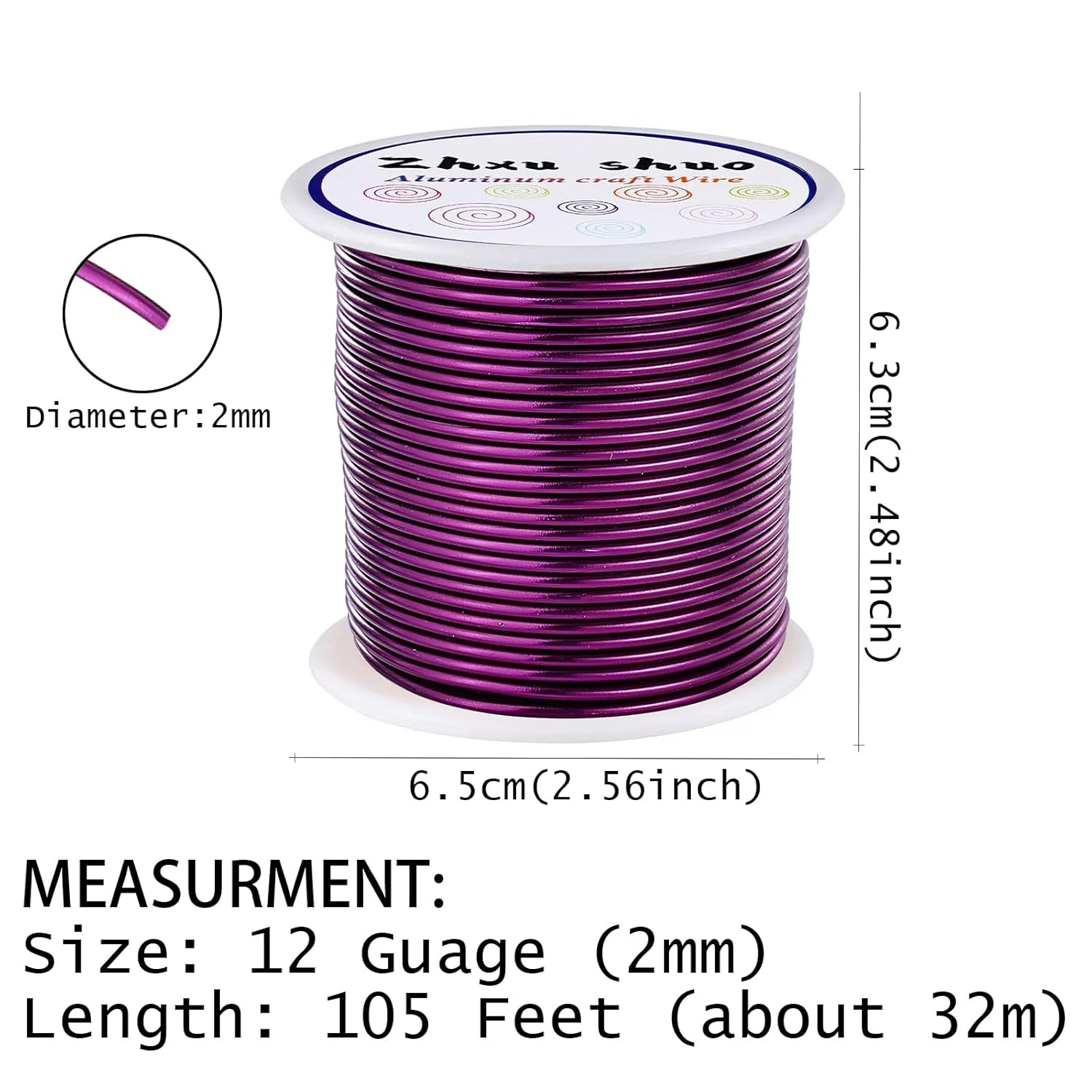 12 Gauge(2mm) Aluminum Wire 35 Yards Anodized Metal Wire for Bonsai Armature Crafting Sculpting Jewelry Craft Making Beading Floral (Purple, 12 Gauge)