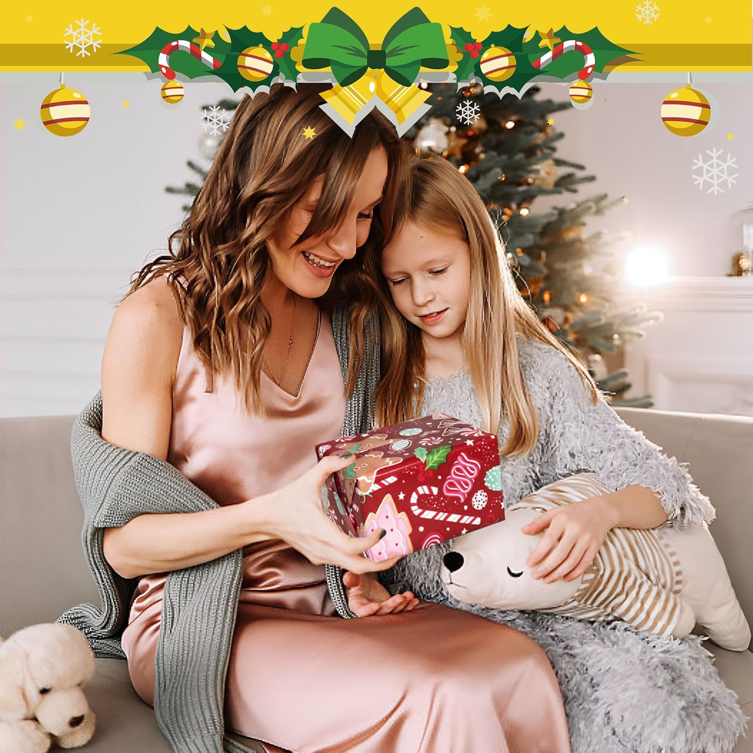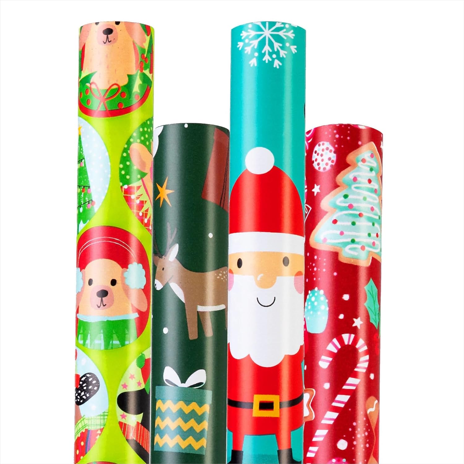 - Seasonal Variety: Featuring 4 unique designs, this wrapping paper collection includes Gingerbread Man and Candy Cane, Santa Claus carrying gifts, Christmas tree/bell and Reindeers, Various dog badge designs, giving your gifts a stylish holiday touch.