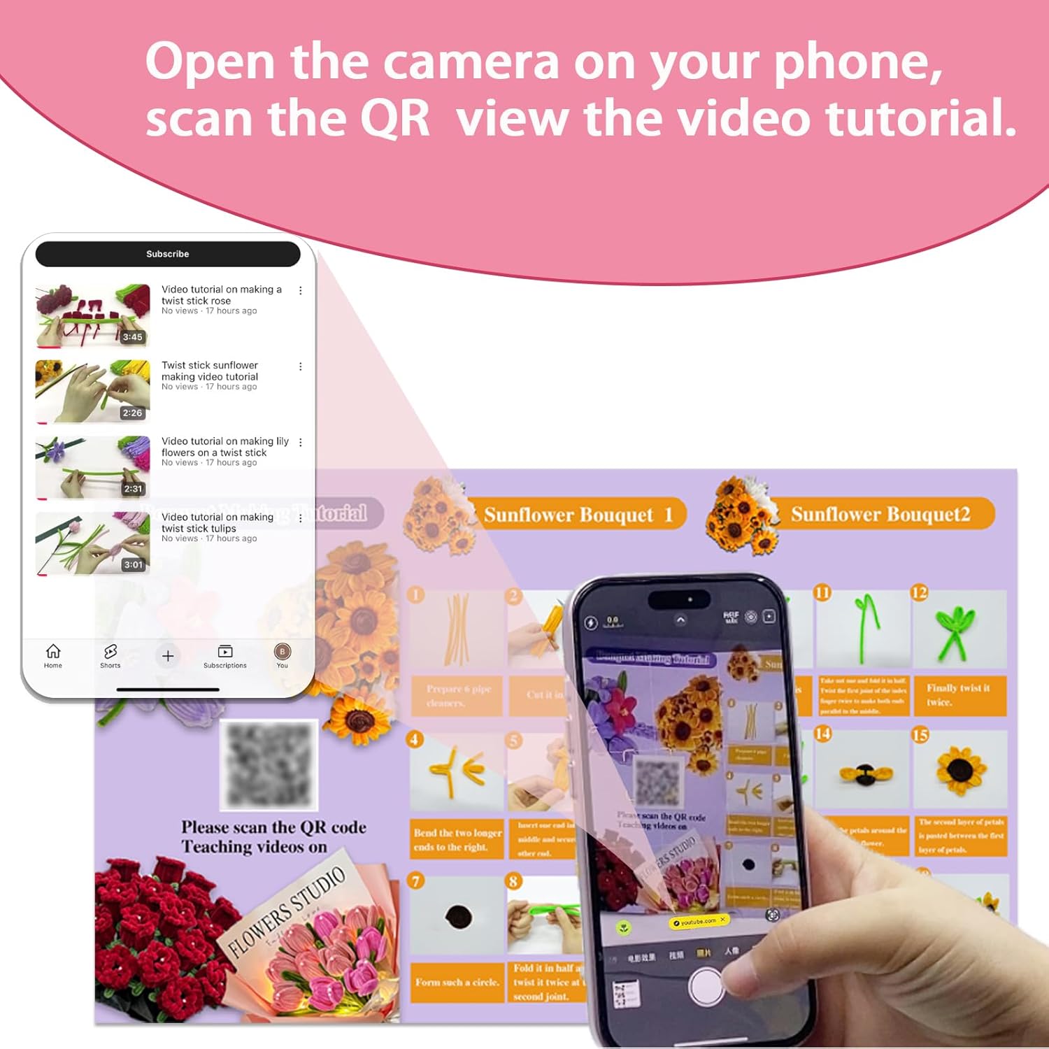 - 【Pipeline Cleaner Smoking Pipe Process Kit】The DIY bouquet kit includes all accessories for making pipeline cleaning agent bouquets: 100 colorful pipeline cleaners per flower, a total of pipe cleaner flower kit 400 pieces, 20 stem flower stems threads, 1 roll of ribbon, 2 rolls of tape, a pack of pearls, 1 light strip, as well as instructions and video tutorials