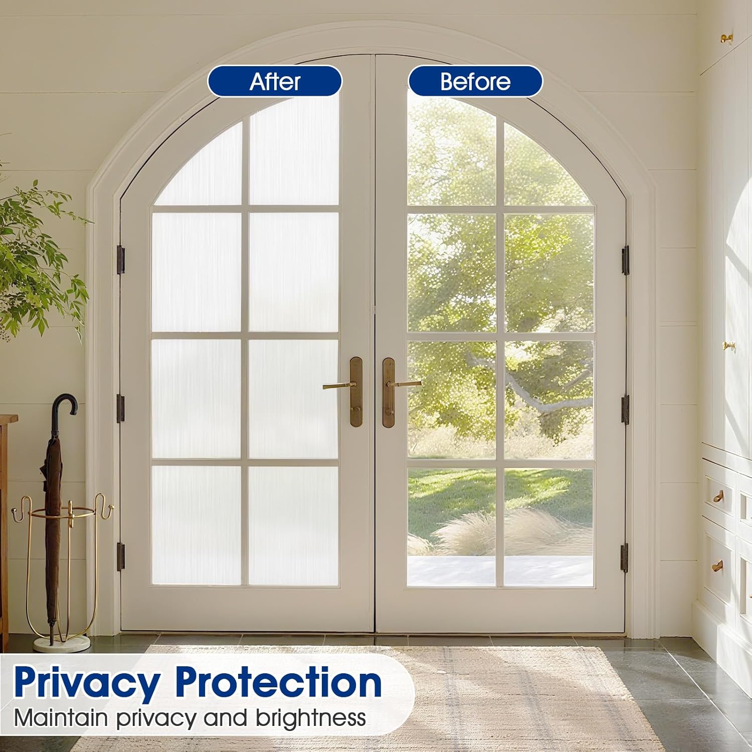 - Day & Night Privacy Shield: Brushed texture window film blocks 96% visibility at just 5-inch distance while allowing 70%+ light transmission - No more peeping Toms in bathrooms/bedrooms/garages