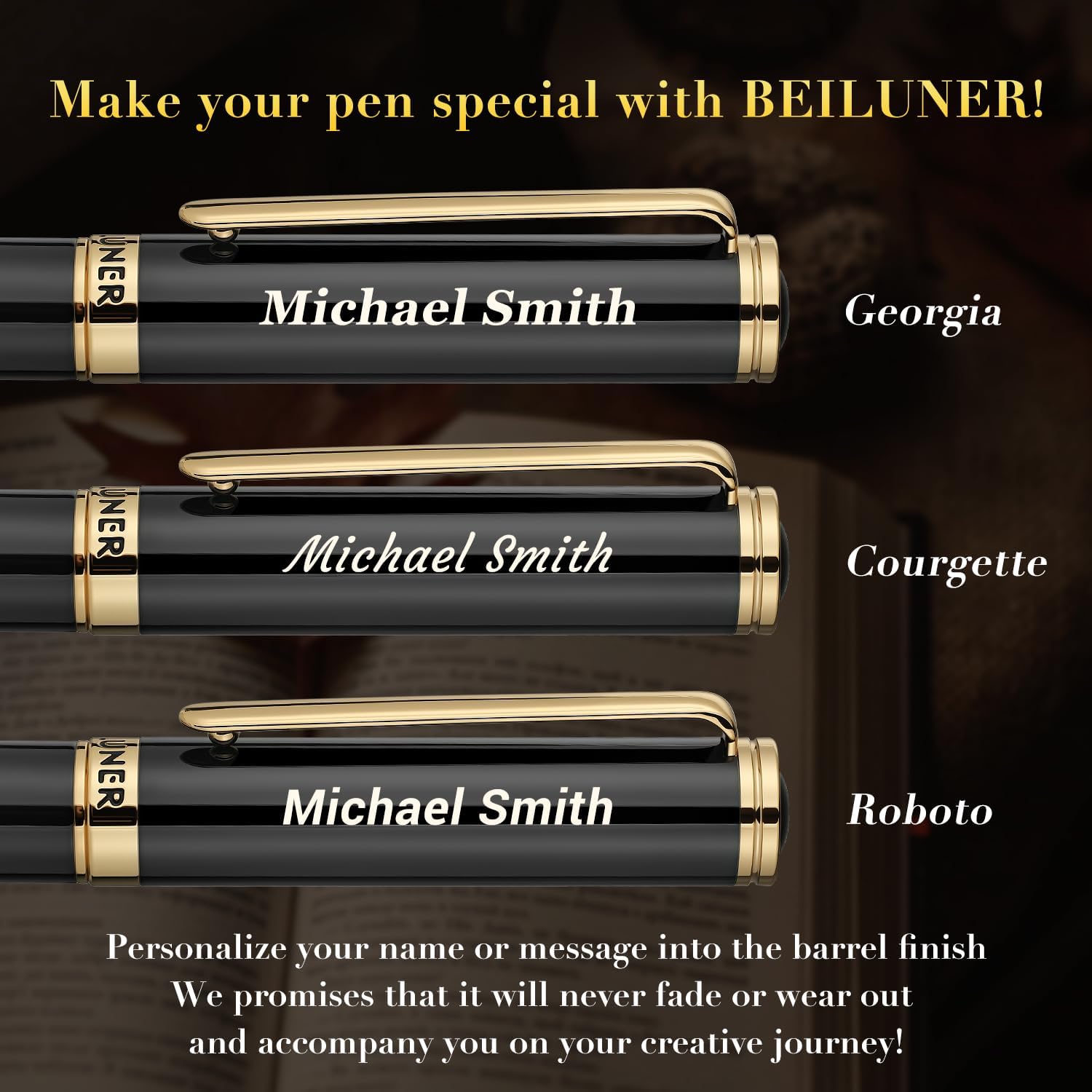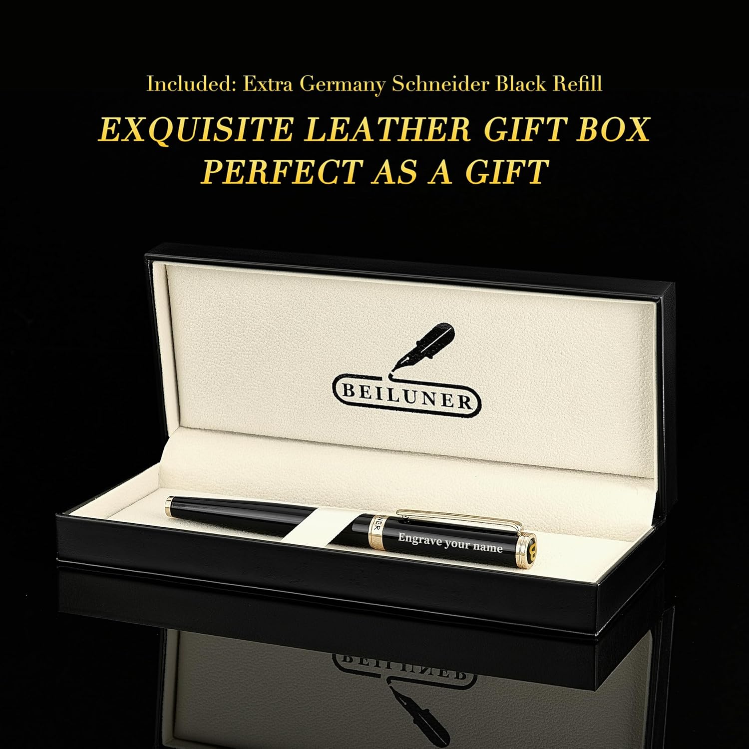 BEILUNER Black Personalized Pen,Stunning Luxury Lacquer With 24K Gold,Schneider Ink Refills,Multiple Fonts To Custom Rollerball,Gift Pen For Men & Women,Executive,Graduation,Christmas,Nice Pens