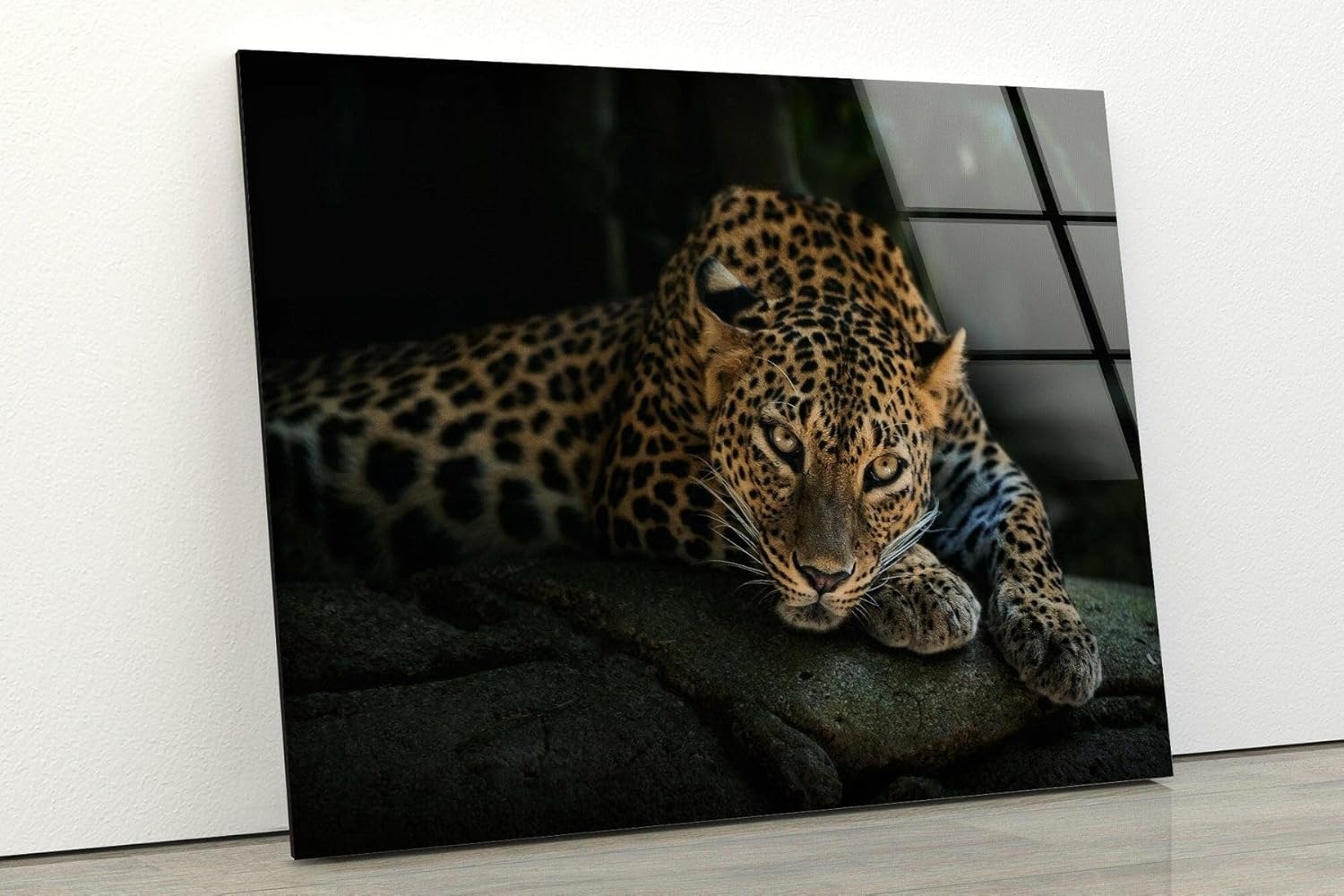 My Photostation.com 28Wx18H'' Fierce Leopard Glass Wall ArtTempered Glass Printing Wall Decor Large Wall Art Wall Hangings