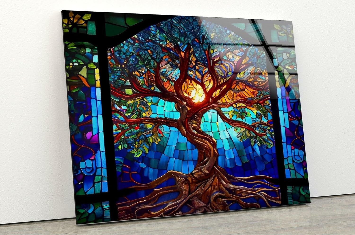 My Photostation.com Round 24'' Stained Blue Life of Tree Glass Wall ArtTempered Glass Printing Wall Decor Large Wall Art Wall Hangings