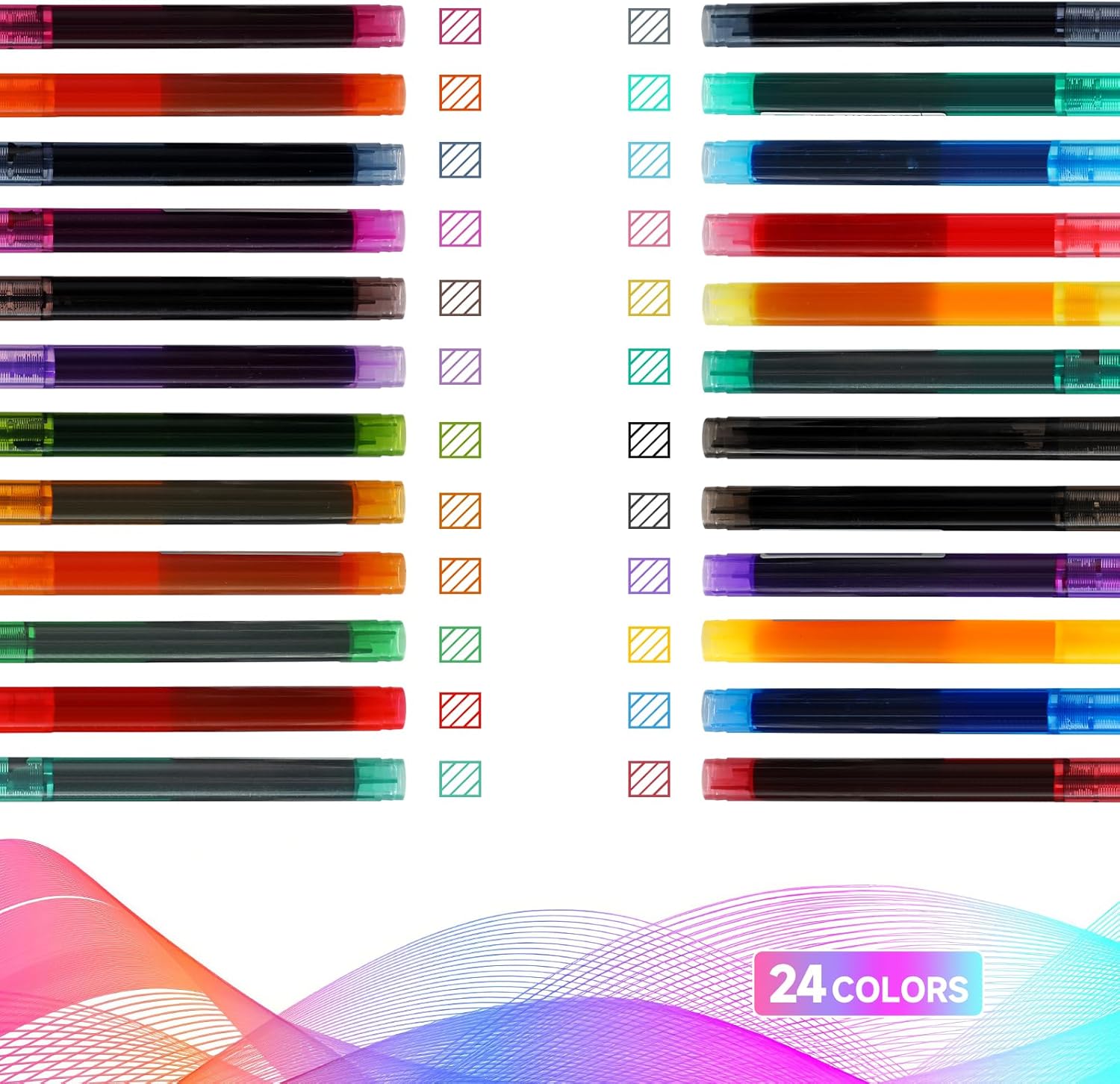 - Transparent Barrel Ink Visibility:Bulk Pack for Teachers & Daily Use, Clear barrels let you check ink levels easily—no surprises! This multi - color set (24 pens) is a bulk pack dream for teachers, students, or anyone who loves colorful stationery. Reliable for daily writing and gifting.