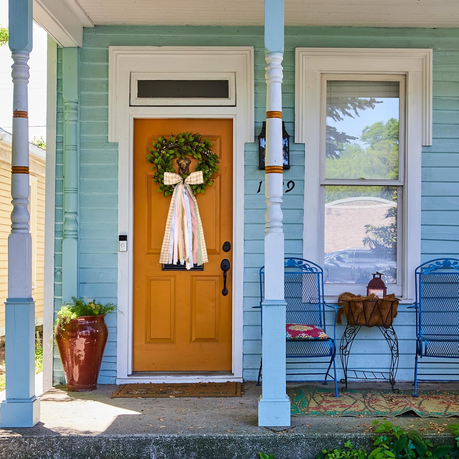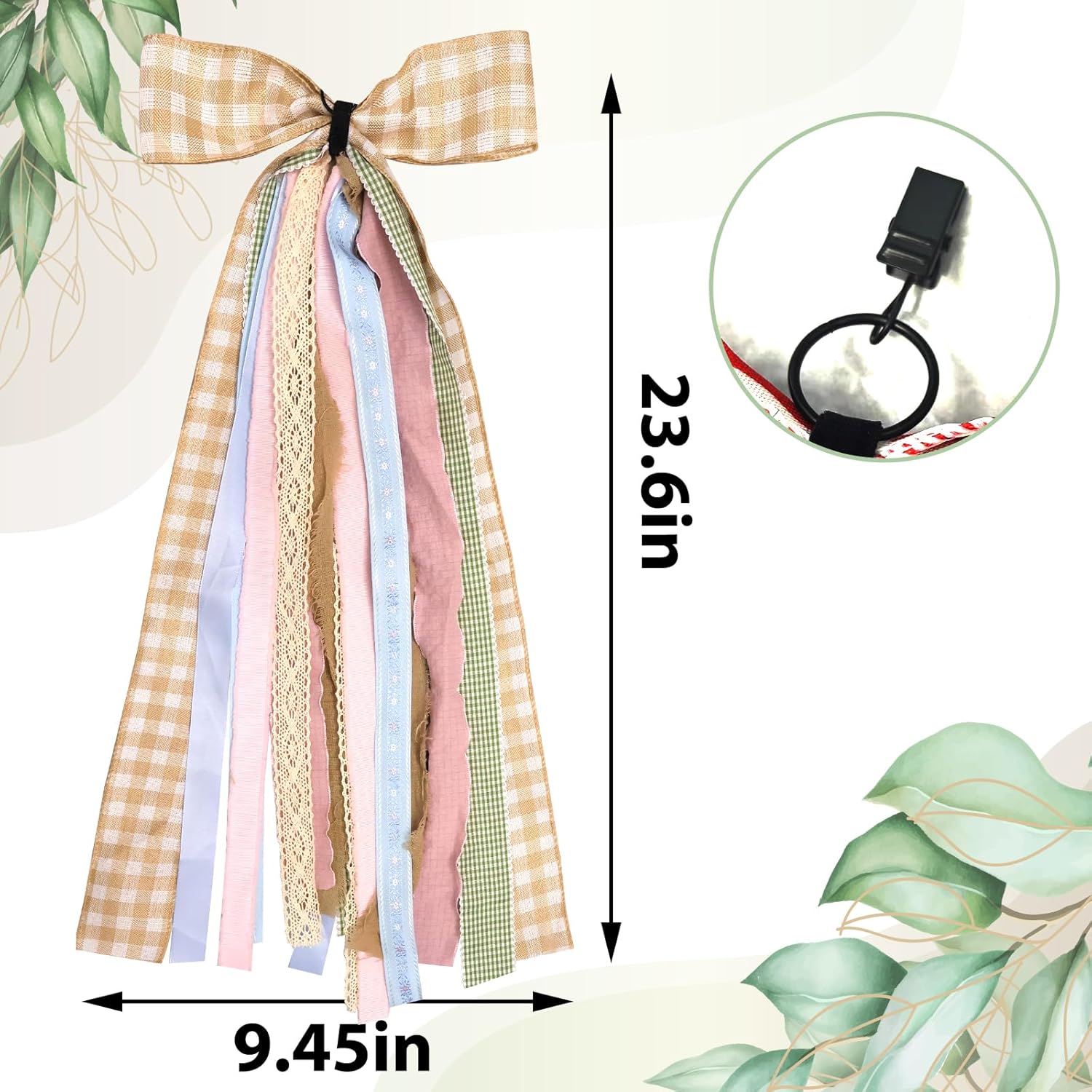 - Easy Hanging: Our large ribbon bow come equipped with a clip on the back, you can hang easily on windows, doors, wreaths, banisters, fences, trees, porch, garland, yard, posts, swags, mentals, and so on. Both outside decorating and inside decorating are suitable.
