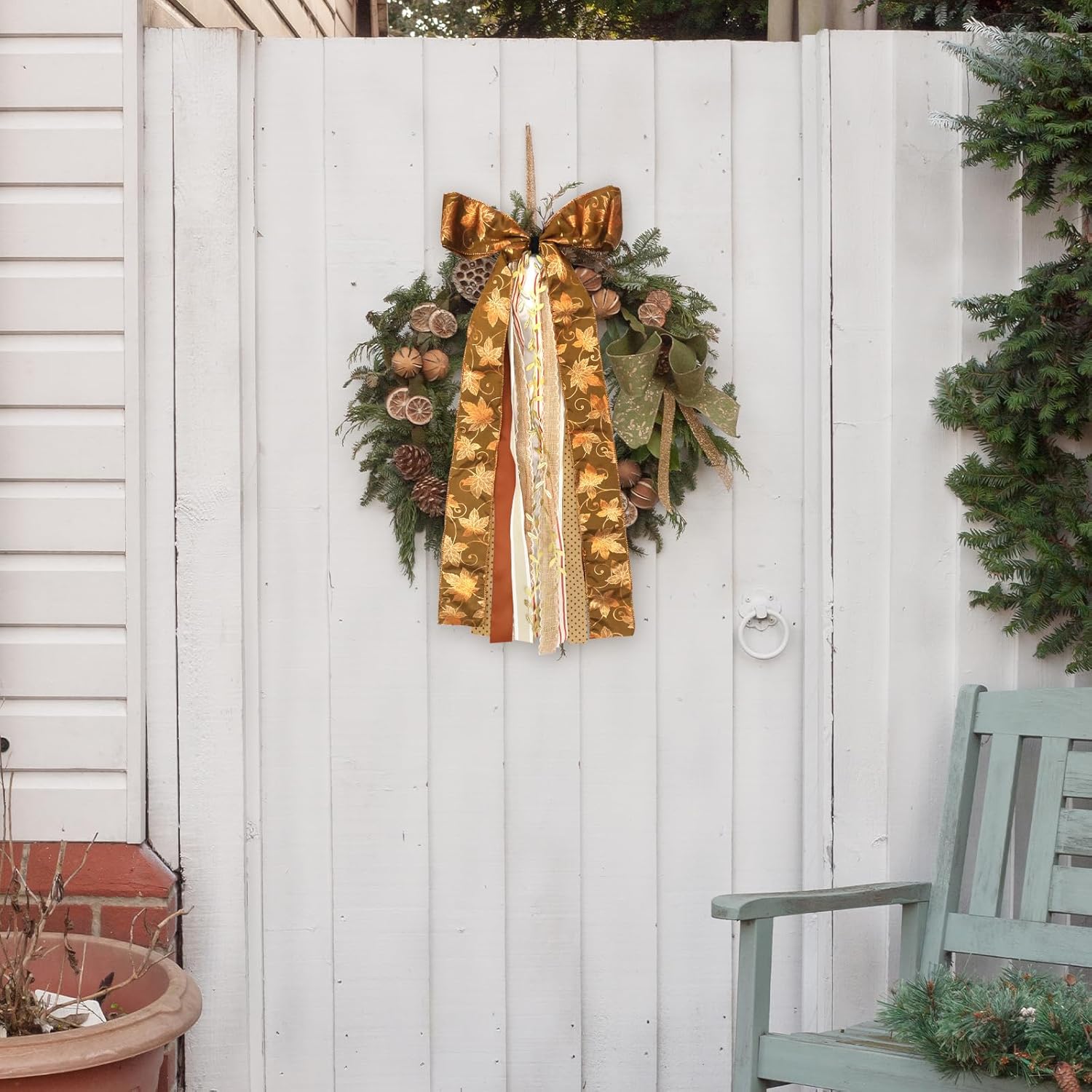 - Easy Hanging: Our large glitter ribbon bow come equipped with a clip on the back, you can hang easily on windows, doors, wreaths, banisters, fences, trees, porch, garland, yard, posts, swags, mentals, and so on. Both outside decorating and inside decorating are suitable.