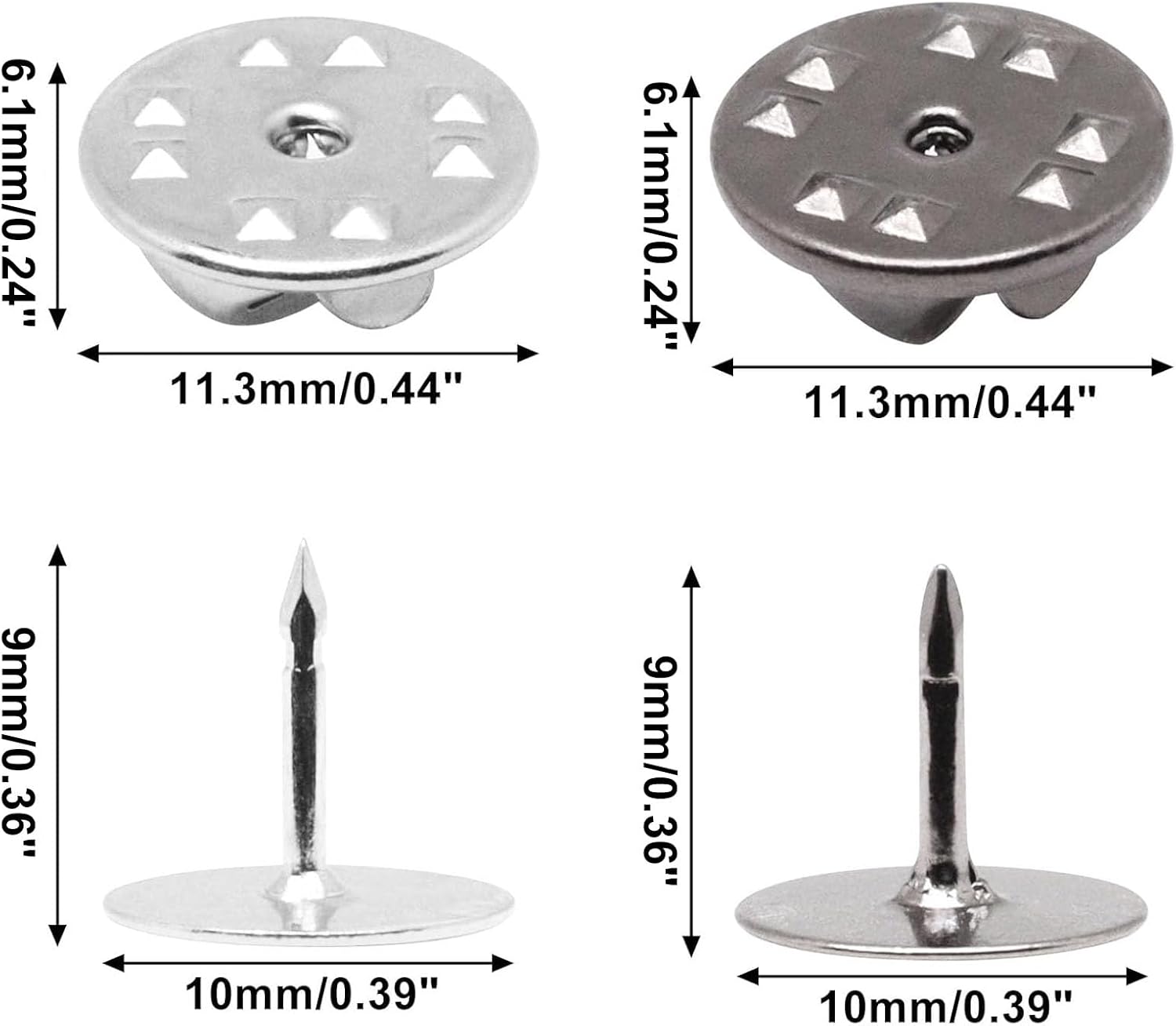 - Size: Metal clutch backs diameter 11.3mm/0.44", 6.1mm/0.24" in height; Pin backing diameter 10mm/0.39", 9mm/0.36" in height. Total 130set pin backs locking (silver 60set & black 60set), meet your different uses for crafts.