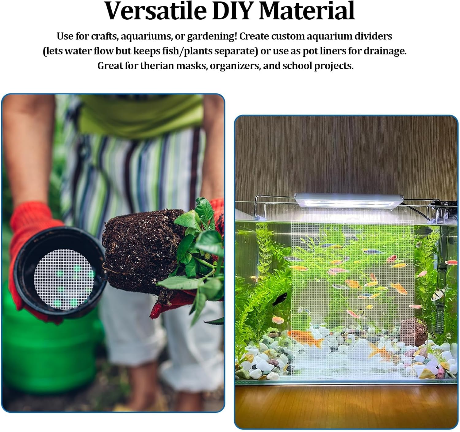 - Versatile DIY Material:Use for crafts, aquariums, or gardening! Create custom aquarium dividers (lets water flow but keeps fish/plants separate) or use as pot liners for drainage. Great for therian masks, organizers, and school projects.